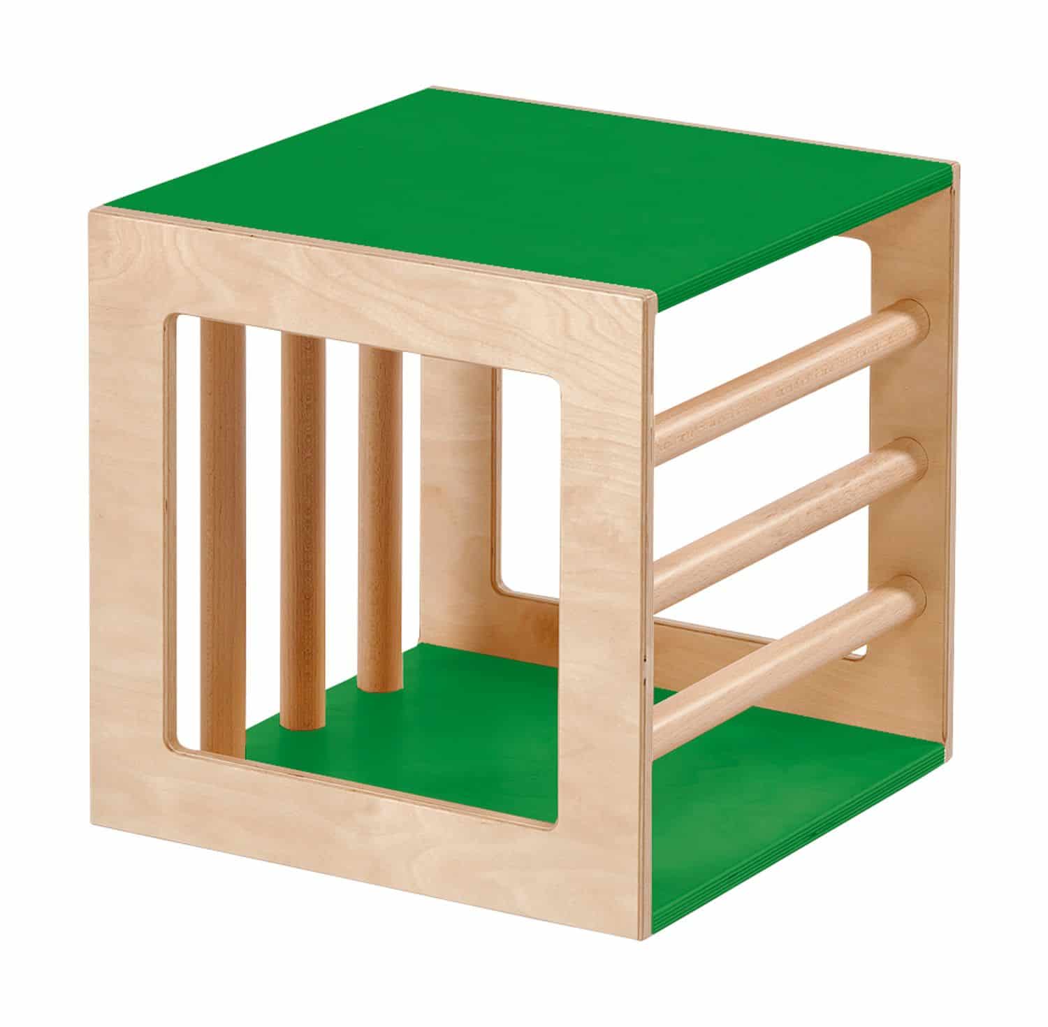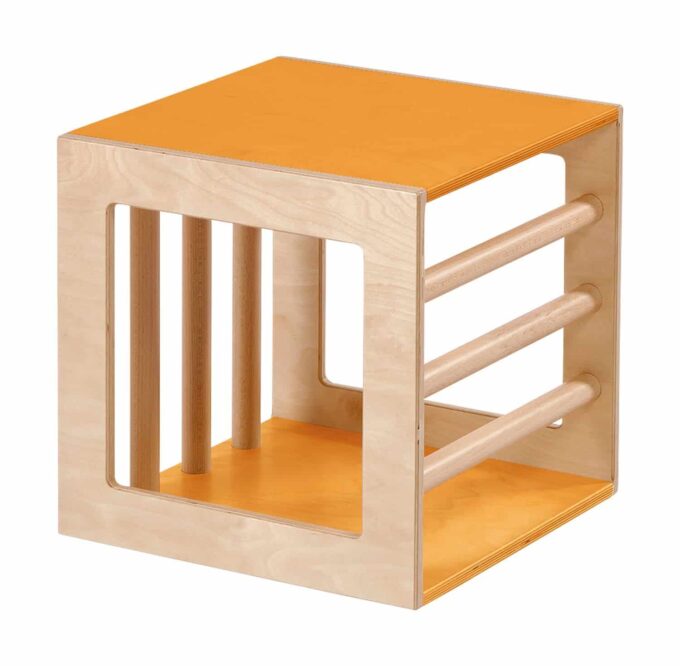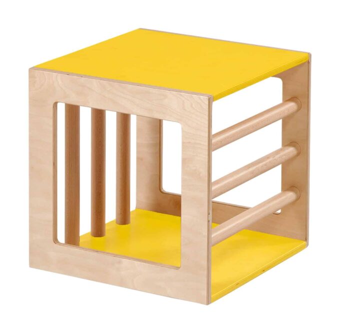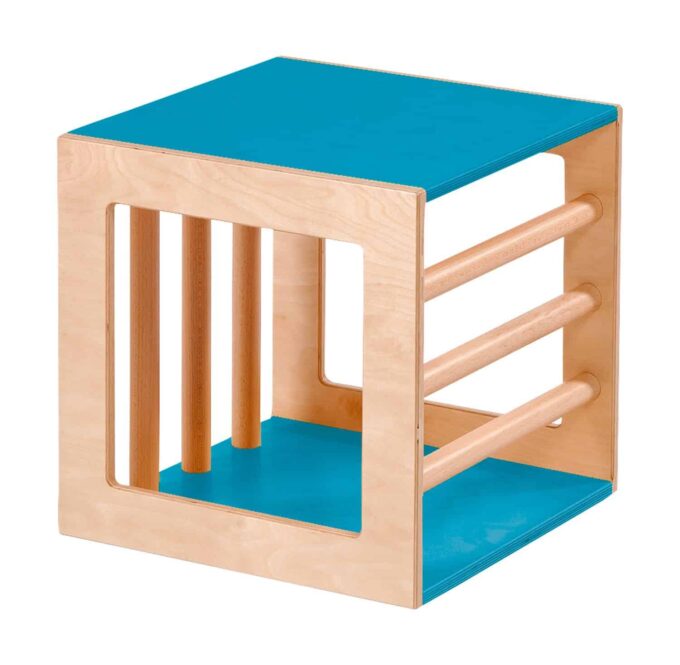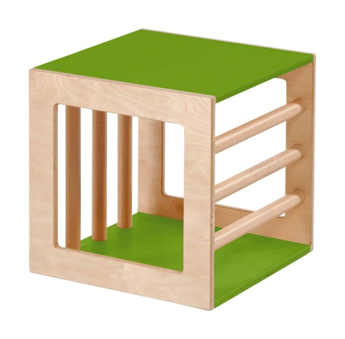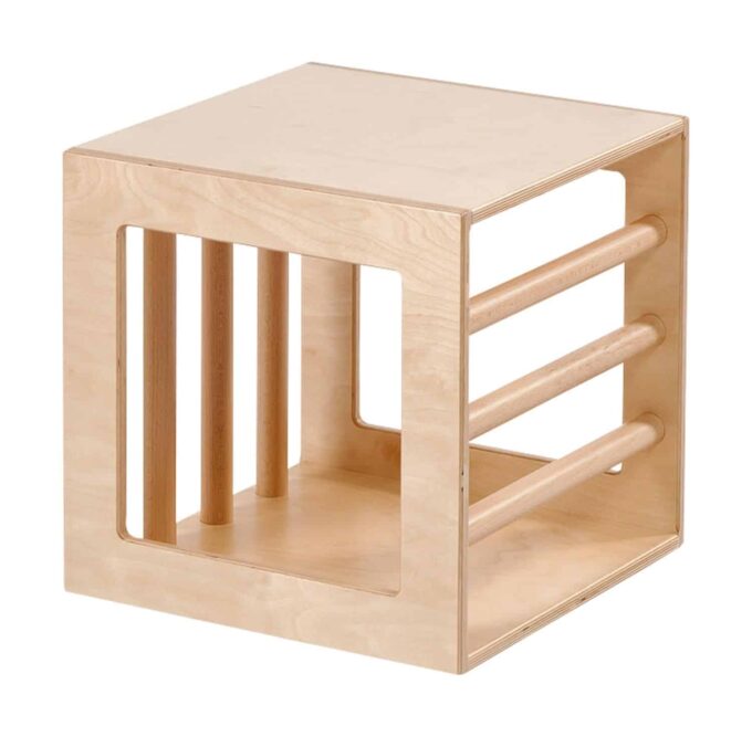 - Robuste Konstruktion: Gefertigt aus 1,5 cm dickem Birke-Multiplex und massiven Klettersprossen aus Buche, ist der Würfel stabil und langlebig.