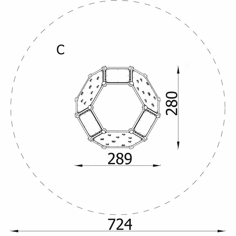 - Sicherheitsbereich: Ø 724 cm (Fläche: 41,2 m²)
