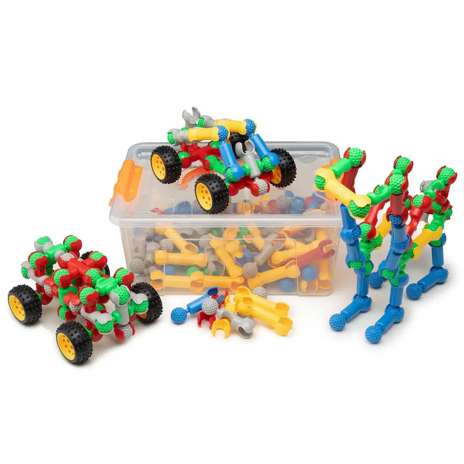 Das vielfältige Sortiment an Verbindungsstücken und Rädern lässt sich mit einem einfachen Handgriff anbringen, sodass die Kinder schnell und unkompliziert mit dem Bauen beginnen können. Die erstellten Figuren sind stabil und weichen nicht einfach auseinander – perfekt, um ihre Kunstwerke stolz zu präsentieren!