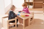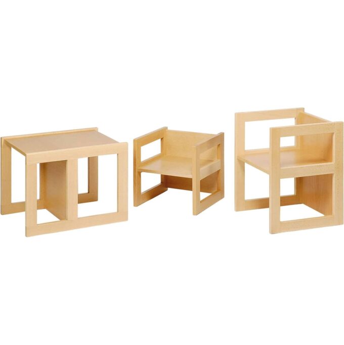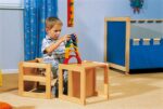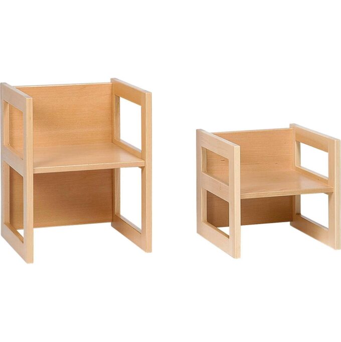 Dieses durchdachte Design macht den Kombihocker zu einem unverzichtbaren Begleiter in Kindergärten, Schulen, therapeutischen Einrichtungen und natürlich auch zu Hause. Seine natürbelassene, lackierte Oberfläche sorgt für eine warme und natürliche Ausstrahlung, die jedes Umfeld bereichert. Dank seiner unterschiedlichen Sitz- und Tischhöhen passt sich der Kombihocker perfekt jeder Situation an – ob Kinder ihn zum Spielen, Lernen oder Malen nutzen oder Erwachsene ihn als vielseitiges Möbelstück für den Alltag einsetzen.