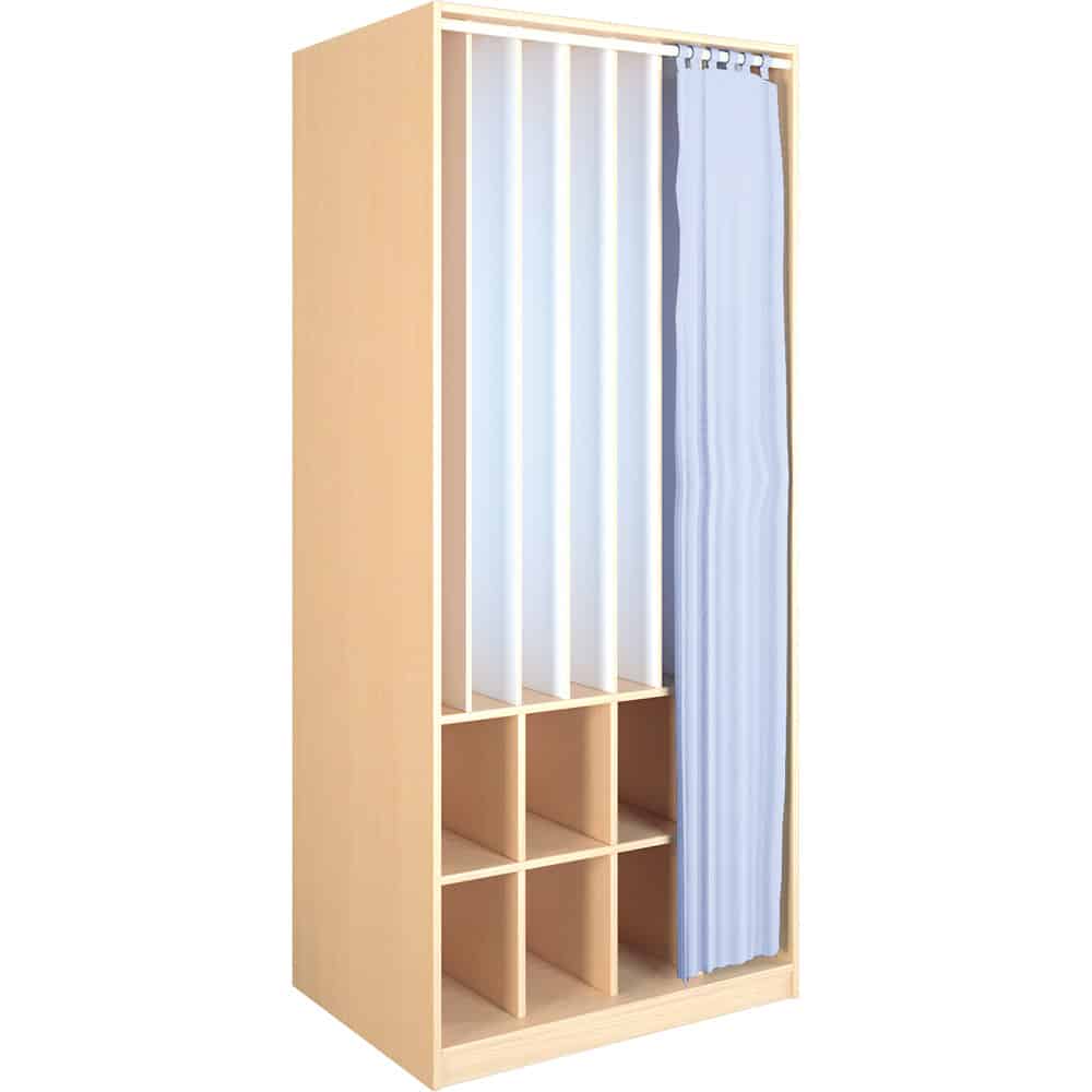 Kombischrank für 8 Matten und Decken in Birke mit grauem Vorhang