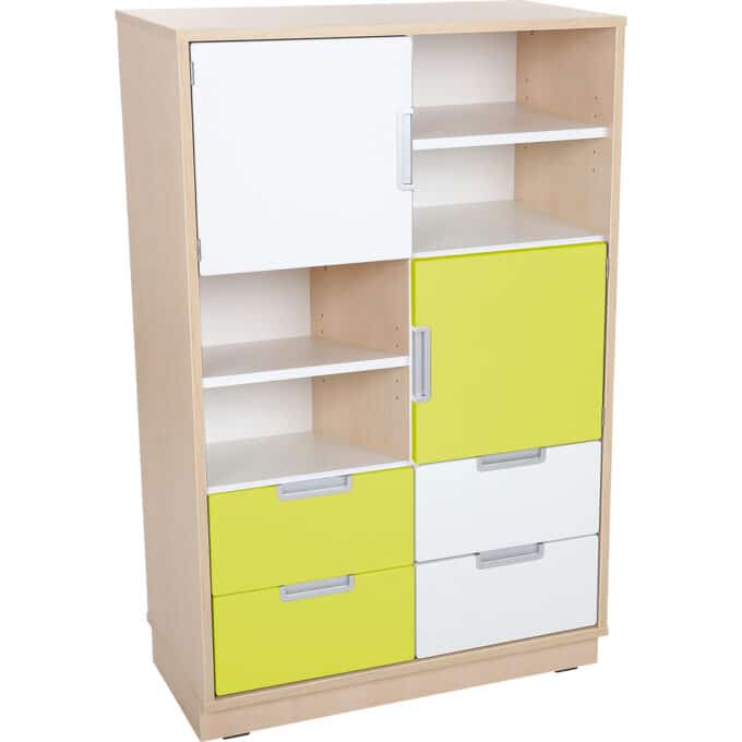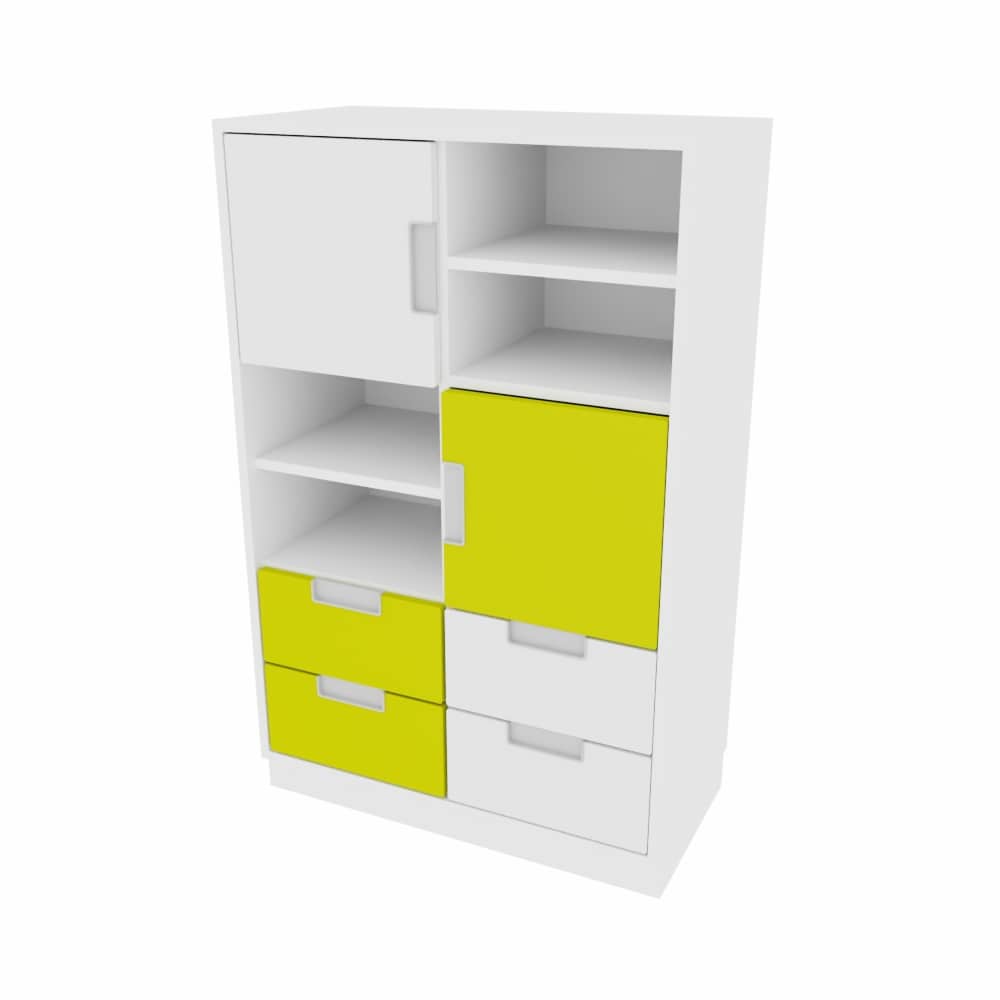 Produktmerkmale Kombischrank L mit 4 schmalen Schubladen und 2 kleinen Türen, Breite: 79 cm, Weiß/Limone (Quadro 49-180°)