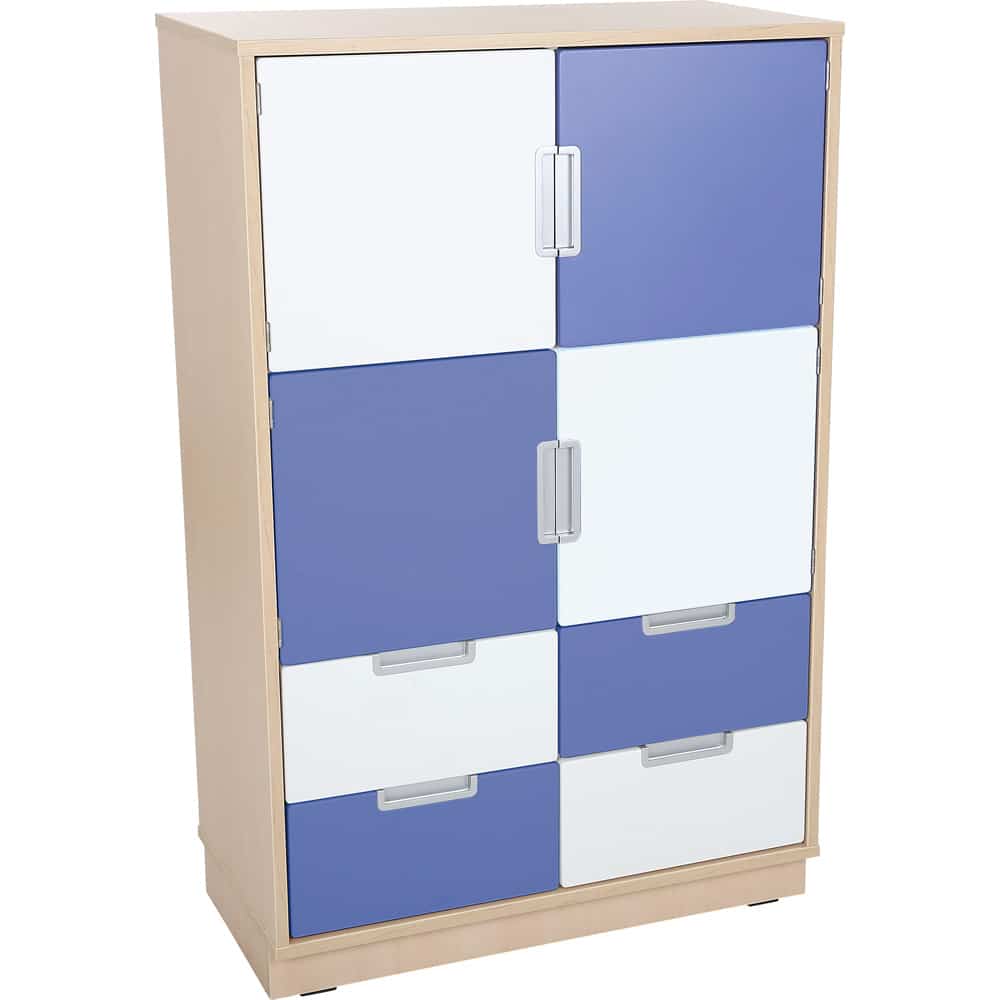 Produktmerkmale Kombischrank L mit 4 schmalen Schubladen und 4 kleinen Türen – Breite: 79 cm – weiß/blau (Quadro 48-180°)