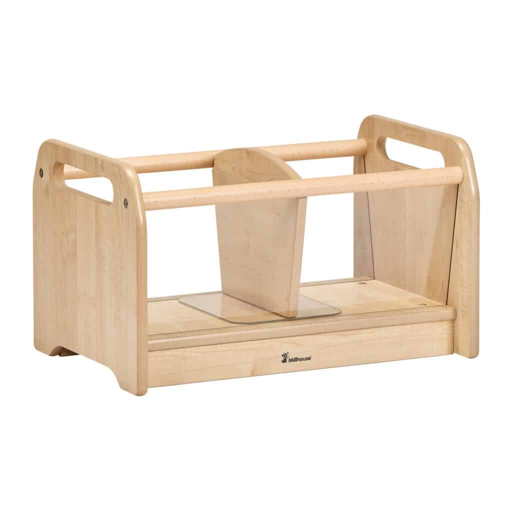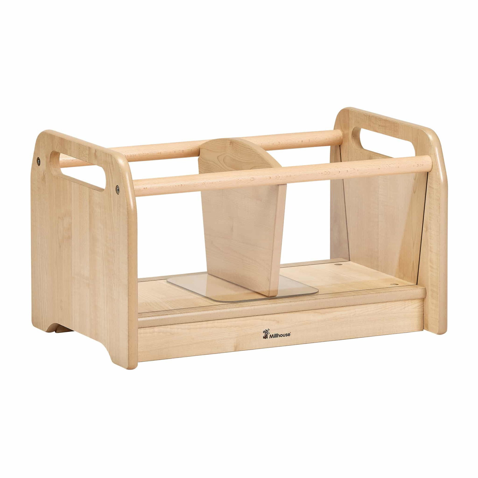 Dieses durchdachte Möbelstück bricht mit der Tradition massiver, undurchsichtiger Kisten. Dank der innovativen, transparenten Seitenwände aus robustem Acrylglas haben Kinder und Betreuer den vollen Durchblick. Nichts verschwindet in dunklen Ecken; stattdessen werden Bücher, Spiele oder Bastelmaterialien ansprechend präsentiert und laden zum Zugreifen ein. Gefertigt aus hochwertigem Ahornholz, vereint das Regal natürliche Ästhetik mit hoher Langlebigkeit. Ob als Insel mitten im Raum oder als platzsparender Helfer an der Wand – dieses Regal passt sich flexibel Ihren Bedürfnissen an und schafft eine einladende Lernumgebung.