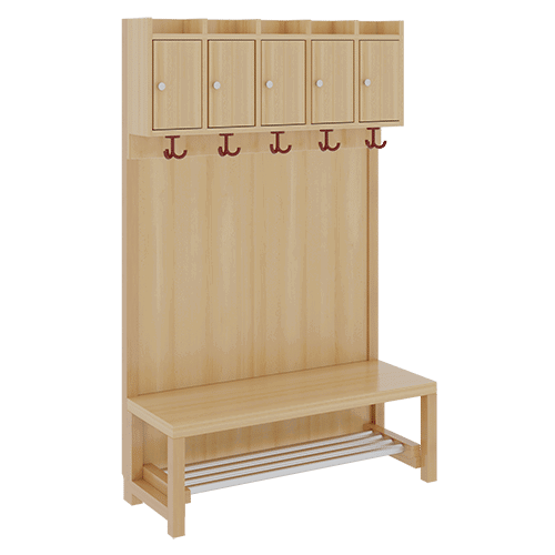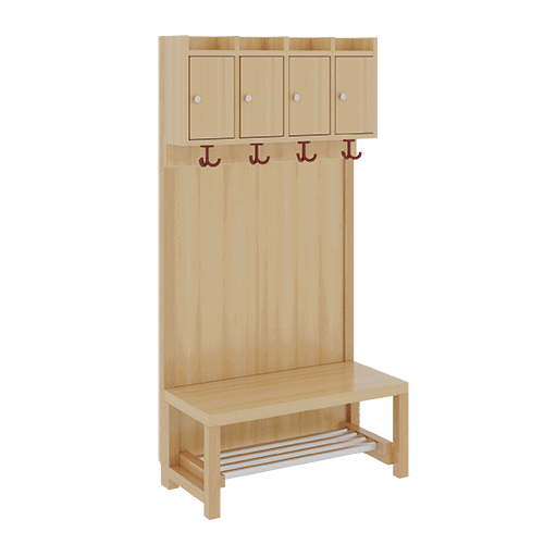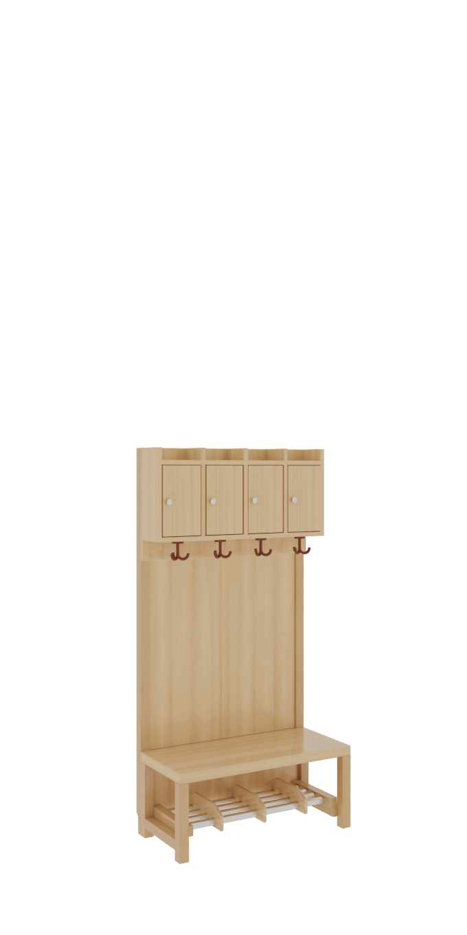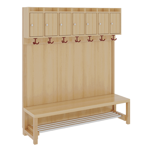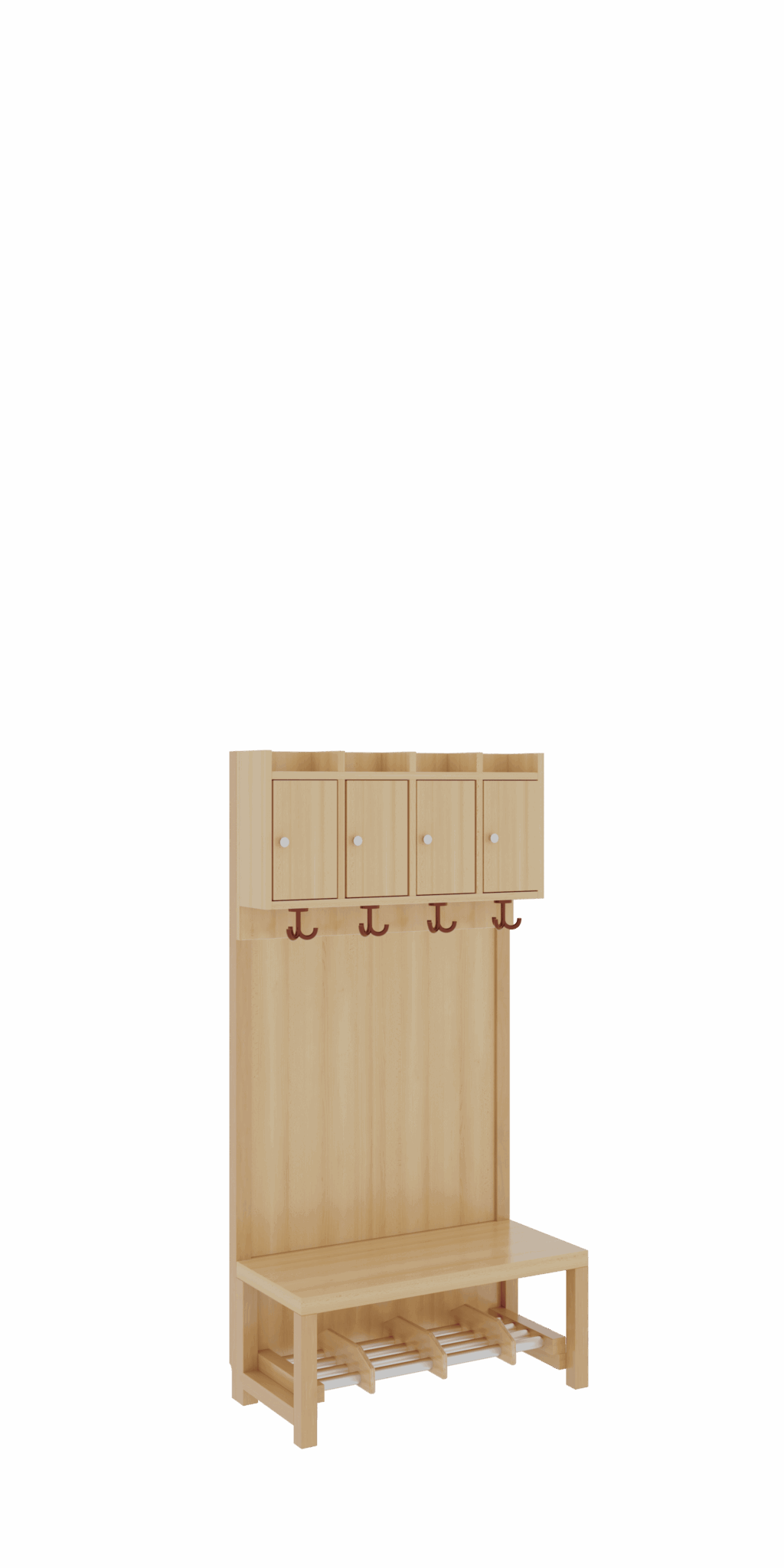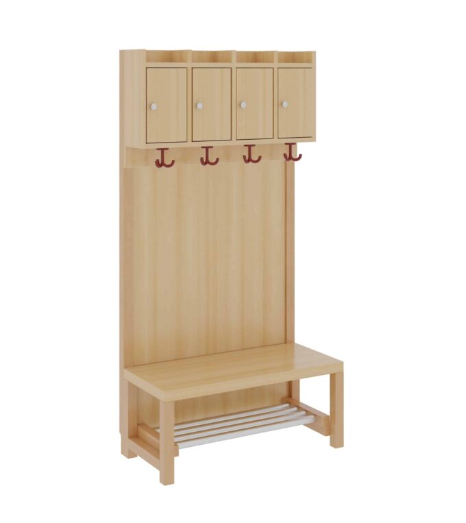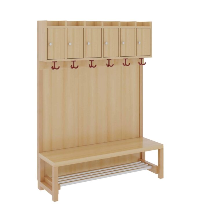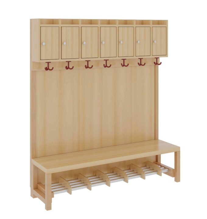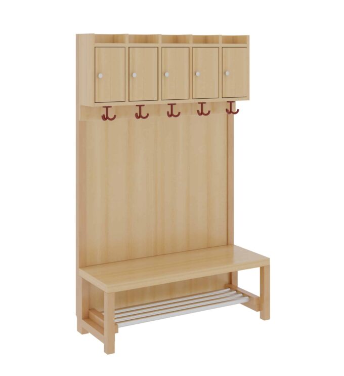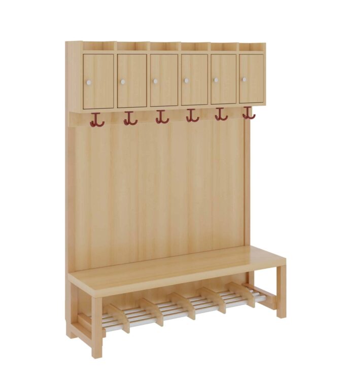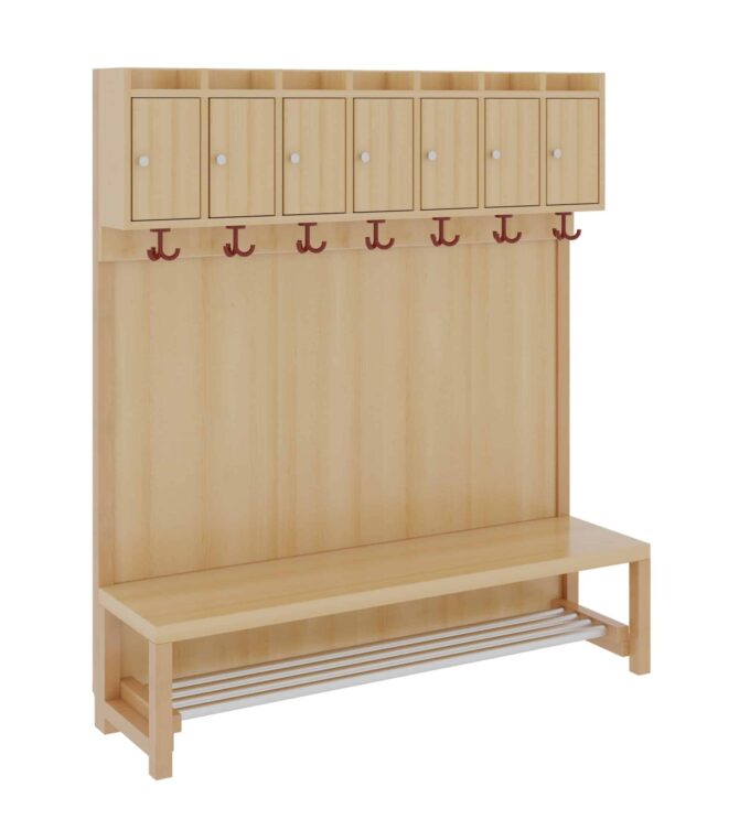 Komplettgarderobe mit Ablage & Türen – Stütze mit Paneelrückwand & Aluminiumrost für Kindergarten & Krippen