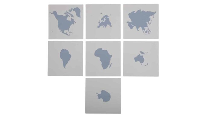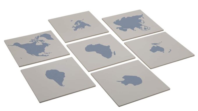 - 7 Holzplatten mit aufgedrucktem Kontinent