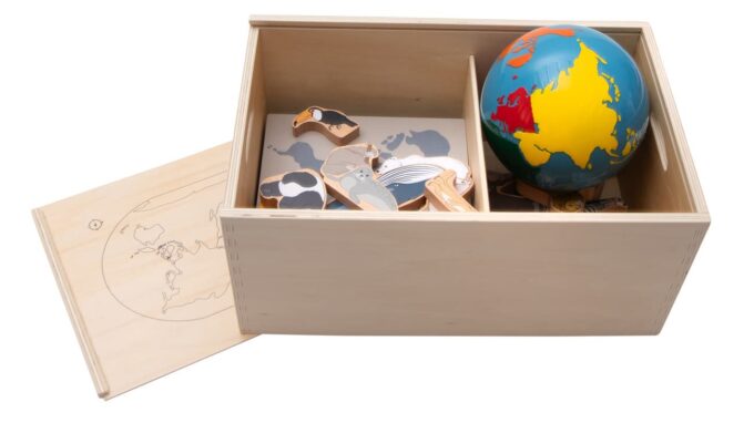 In der liebevoll gestalteten Holzbox finden die kleinen Entdecker alles, was sie benötigen, um die Kontinente zu erkunden. Das Set umfasst 7 Holzplatten mit aufgedruckten Kontinenten sowie 21 farbenfrohe Holztiere, die typisch für jeden Kontinent sind. So lernen die Kinder spielerisch, welche Tiere auf welchem Kontinent leben. Der beiliegende Globus mit farbigen Erdteilen bietet einen anschaulichen Überblick und macht das Lernen besonders lebendig.