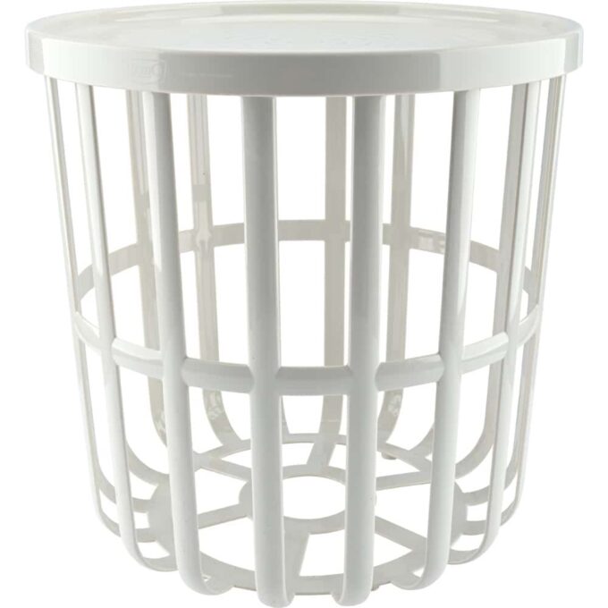 Gefertigt aus hochwertigem Kunststoff, ist der Korb mit Deckel und Tischfunktion langlebig und leicht zu reinigen. Der Deckel bzw. die Tischplatte hat eine Höhe von 2,5 cm und einen Durchmesser von 41 cm, während der gesamte Korb eine Gesamthöhe von ebenfalls 41 cm erreicht. Dies macht ihn optimal für Kinder zum Spielen und für Erwachsene, die eine stilvolle Aufbewahrungslösung suchen.
