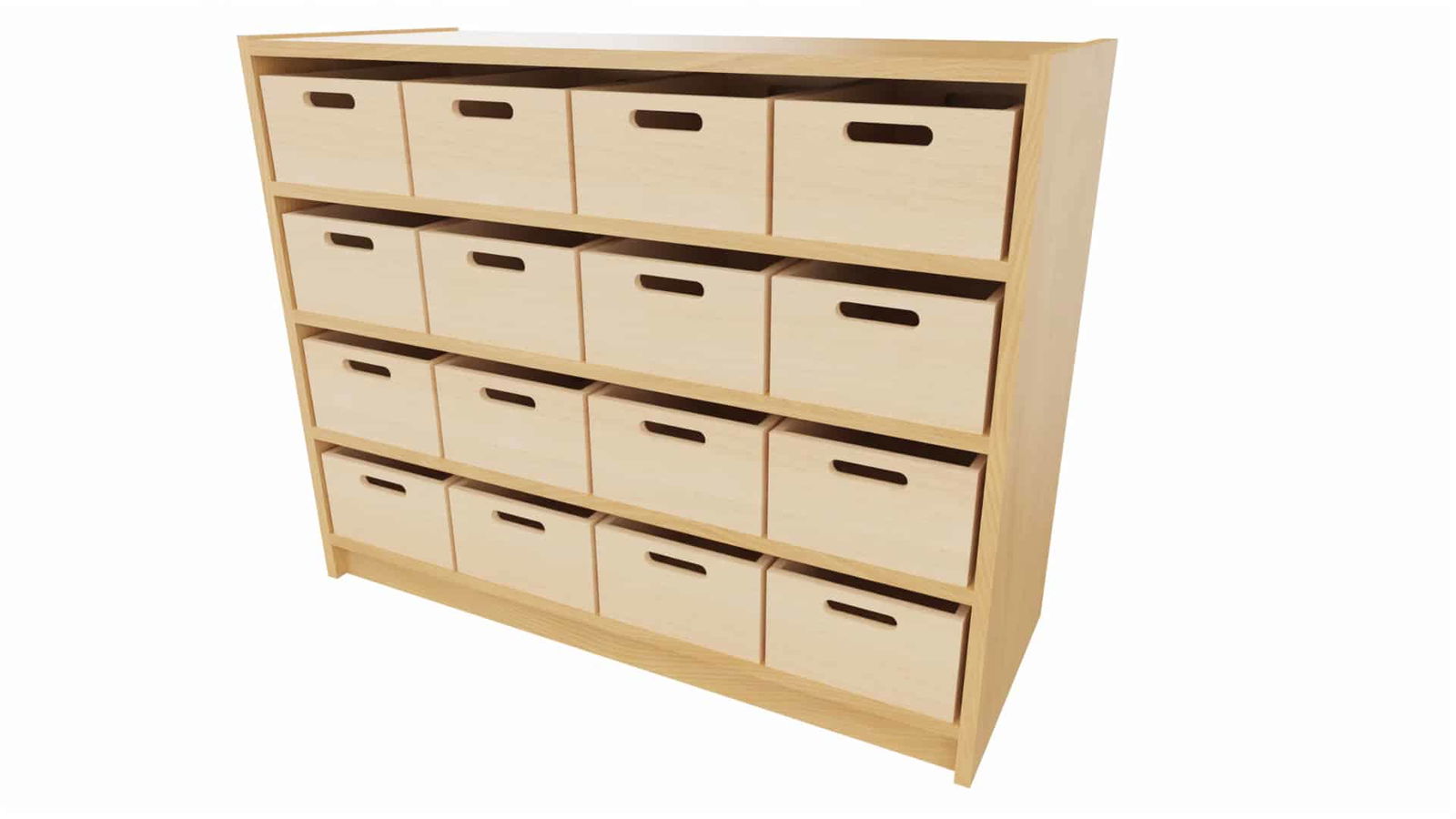Korpus-Classic Unterschrank mit 16 Materialkästen, 3 feste Böden – Breite: 102 cm