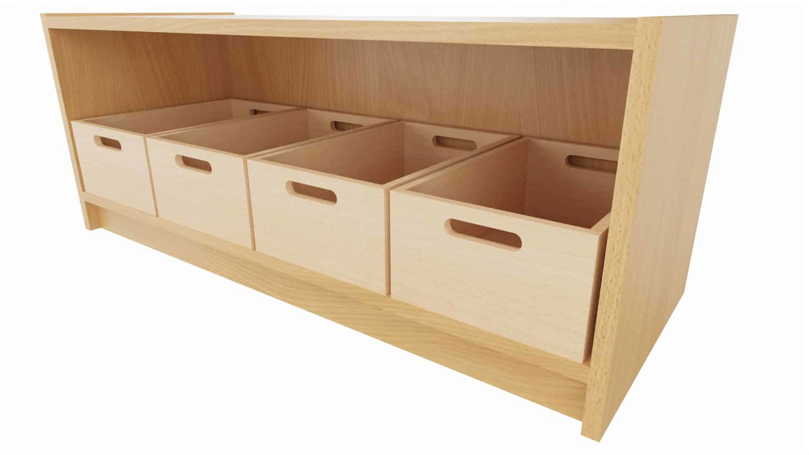 Korpus-Classic Unterschrank mit 4 Materialkästen – Breite: 102 cm
