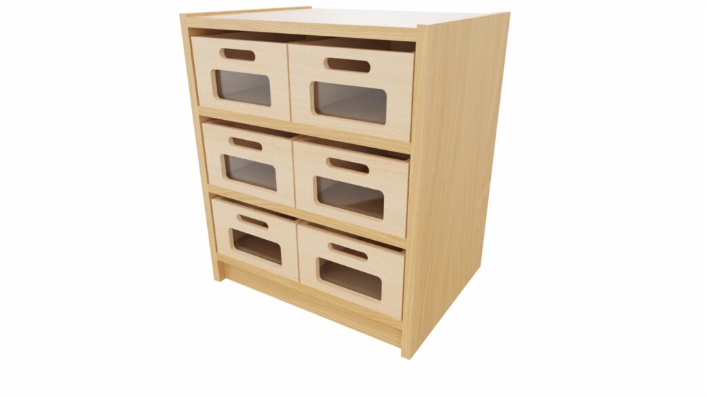 Unser Korpus-Classic Unterschrank mit 6 Materialkästen bietet eine erstklassige Lösung für Ihre organisatorischen Bedürfnisse in Kindergärten, Kitas und anderen pädagogischen Einrichtungen. Mit einer Breite von 52 cm und zwei festen Böden, garantiert dieser Unterschrank effiziente Stauraummöglichkeiten für all Ihre Materialien.