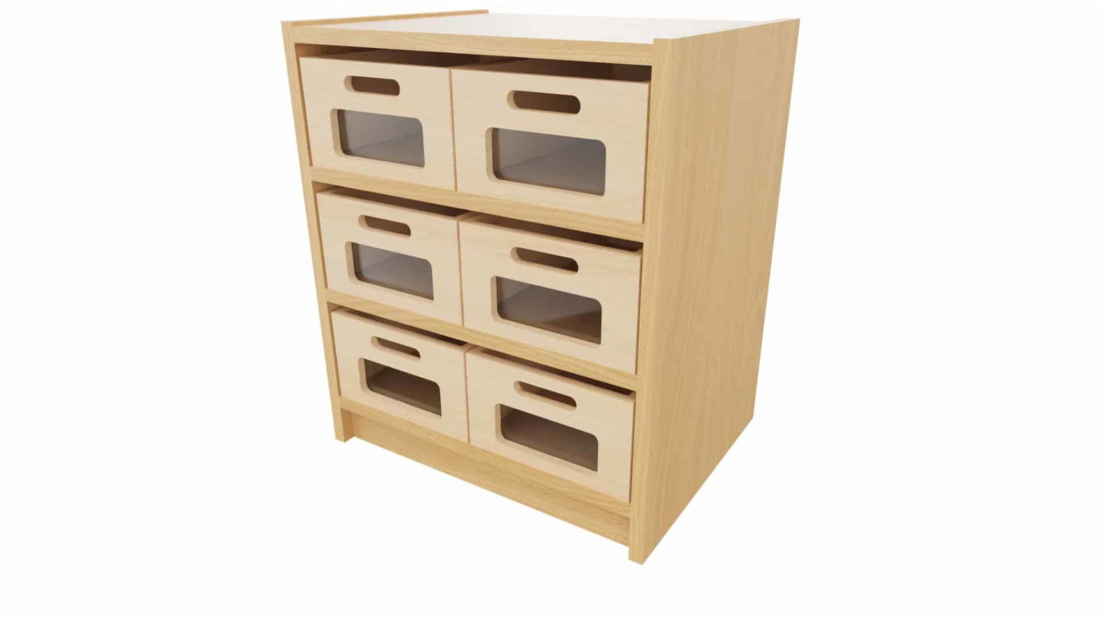 Produktdetails Korpus-Classic Unterschrank mit 6 Materialkästen, 2 Einlegeböden – Breite: 52 cm