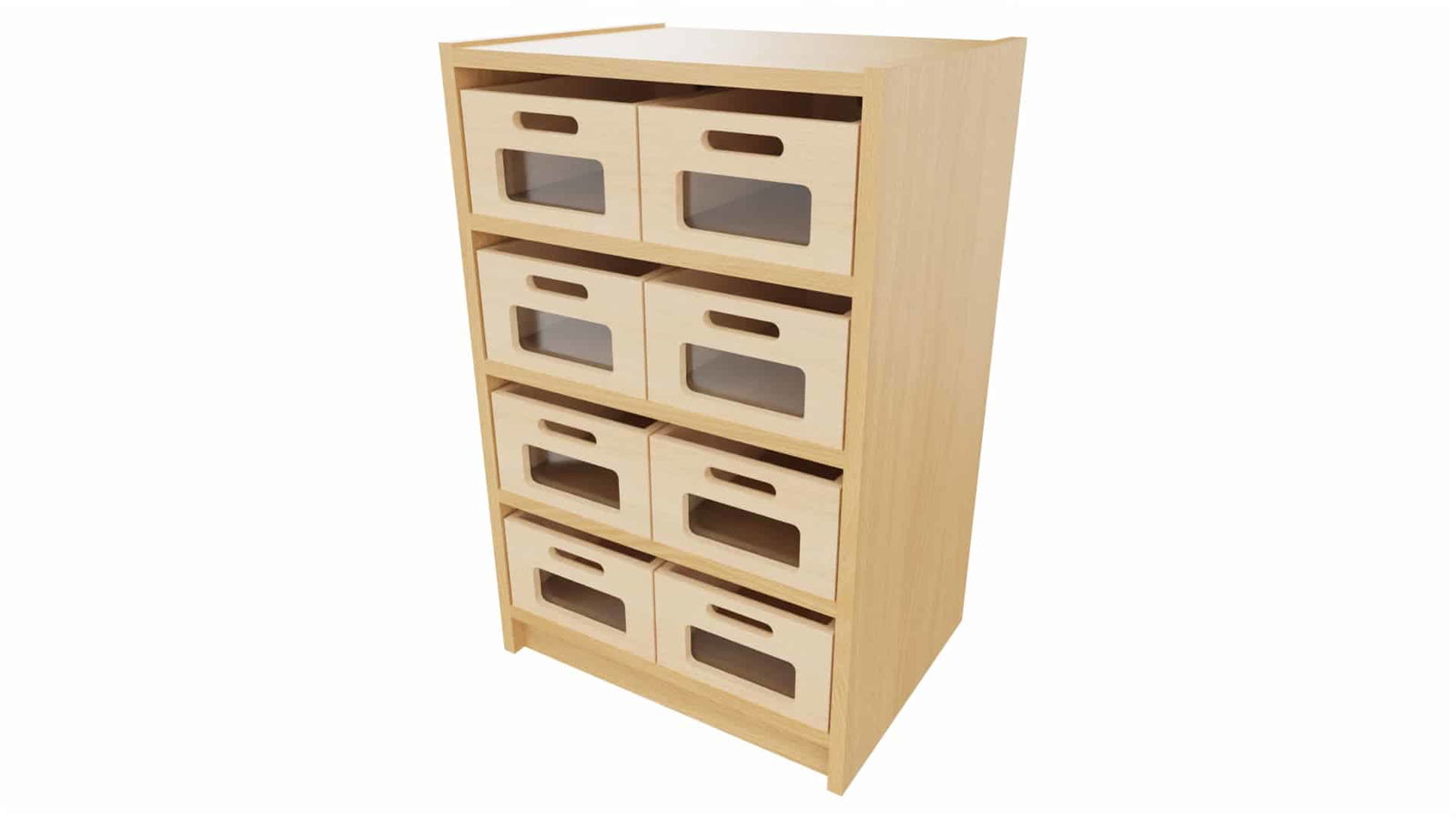 Entdecken Sie den Korpus-Classic Unterschrank (52 cm) mit 8 Materialkästen und 3 Einlegeböden. Wahlweise mit Acrylglasfront, robustes Dekor Buche. Ideal für Kindergärten und Kitas. Jetzt mehr erfahren!