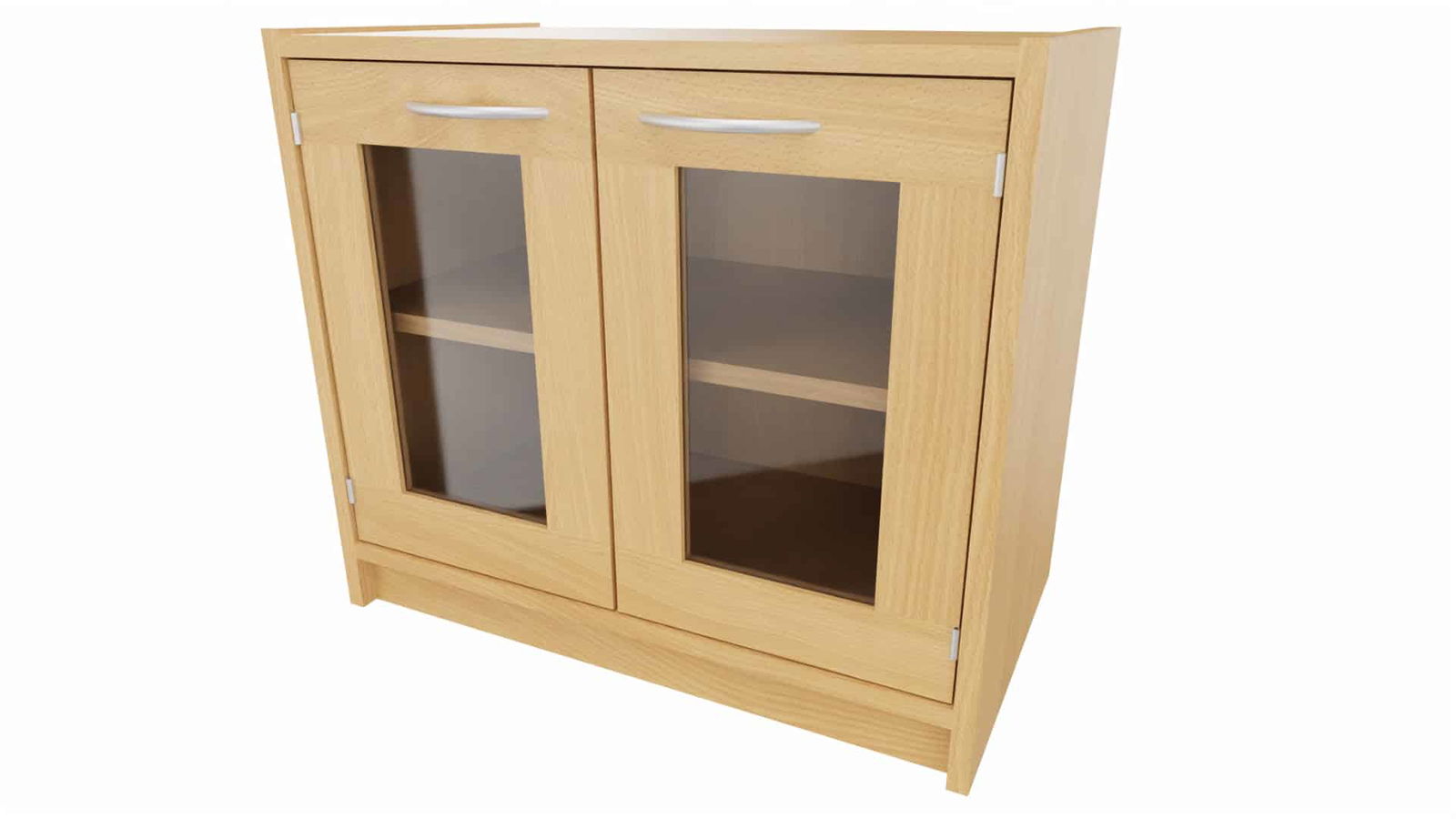 - Doppeltür (mit Glasfüllung), 1 Einlegeboden, ohne Mittelwand (B/H/T: 69 x 60 x 40 cm)