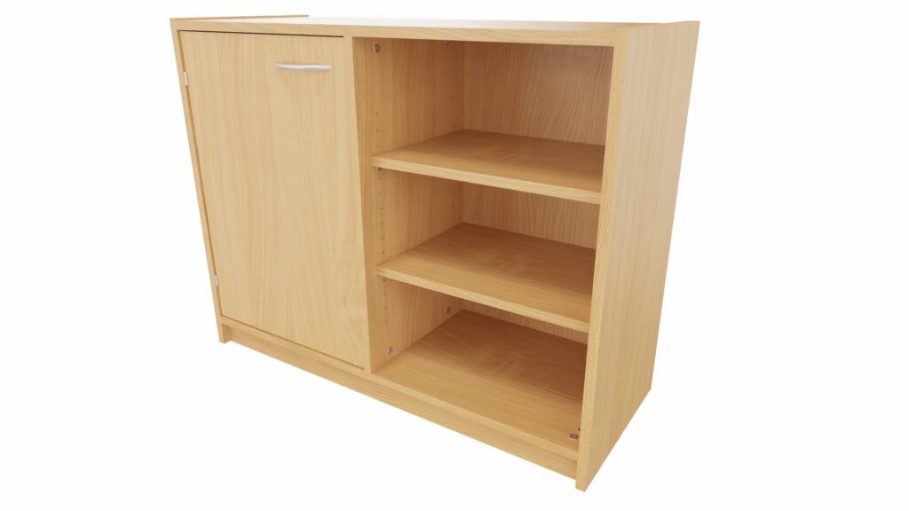 Erhöhen Sie die Flexibilität und Ordnung in Ihrer Einrichtung mit dem Korpus-Classic Unterschrank, ausgestattet mit einer Tür und einem Regal, jeweils mit 2 Einlegeböden. Dieser vielseitige und robuste Unterschrank ist die perfekte Lösung für Kindergärten und Grundschulen, um Lernmaterialien, Bastelutensilien und persönliche Gegenstände ordentlich und leicht zugänglich zu verstauen.