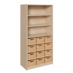 Erleben Sie die perfekte Symbiose aus platzsparendem Design und umfassender Organisation. Unser Korpus-Schrank mit 12 mittelhohen Massivholzkästen und einem offenen Regalaufsatz ist die ideale Lösung für alle, die auf schmalem Raum maximale Ordnung schaffen möchten. Mit einer Breite von nur 78 cm nutzt dieses Möbelstück die Höhe des Raumes optimal aus und kombiniert die Wärme von massivem Buchenholz mit der Funktionalität eines durchdachten Systems. Während in den 12 geräumigen Kästen Materialien und Utensilien übersichtlich verschwinden, bietet das obere Regal schnellen Zugriff auf Bücher, Ordner und Dekoratives. Ein wahres Multitalent für Klassenzimmer, Büros, Werkstätten oder Kreativräume.