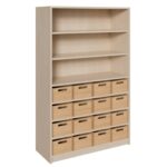 - Oberer Teil: Offenes Regal mit verstellbaren Einlegeböden.