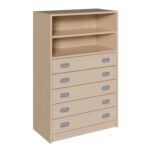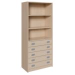 - Hybride Aufbewahrung für maximale Flexibilität: Die fünf leichtgängigen, breiten Schübe bieten großzügigen Platz für Dokumente im DIN-A4-Format, Büromaterial und persönliche Gegenstände. Gleichzeitig ermöglicht das offene Regal darüber den schnellen Zugriff auf Ordner, Bücher, Kataloge oder Dekorationsgegenstände.