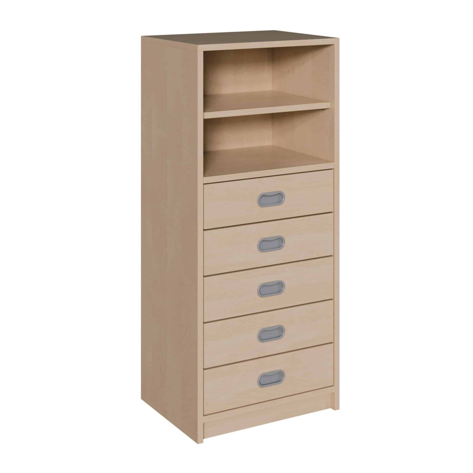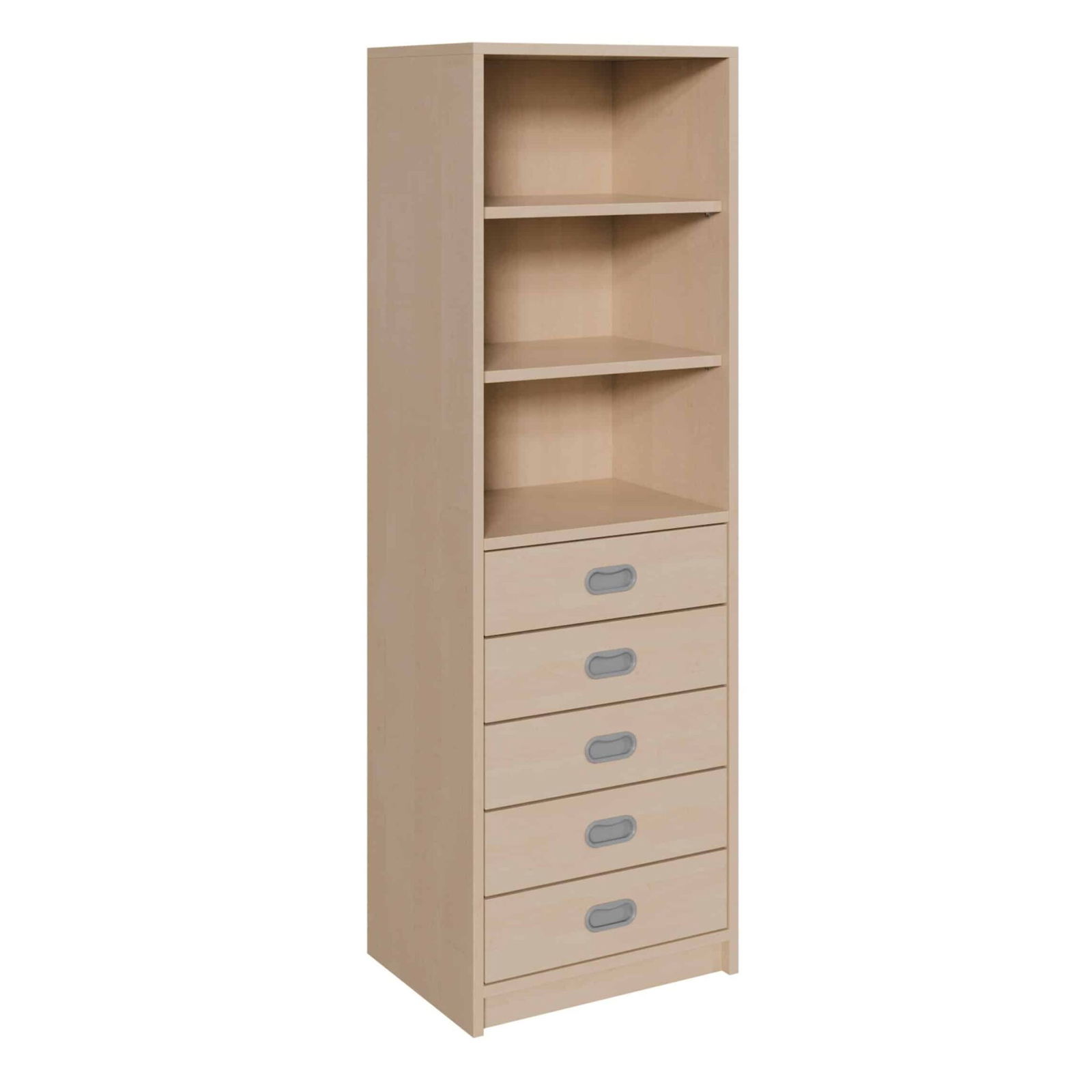 Entdecken Sie eine Aufbewahrungslösung, die maximale Funktion auf minimaler Stellfläche bietet. Unser schlanker Korpus-Schrank kombiniert fünf geräumige Dekorblendenschübe mit einem praktischen, offenen Regal im oberen Bereich. Mit seiner schmalen Breite von nur 52 cm ist er der ideale Spezialist für Nischen, kleine Räume oder als ergänzendes Element neben bestehenden Möbeln. Ob im Büro, im Klassenzimmer oder im Kreativbereich – dieses Möbelstück nutzt den Platz in die Höhe und schafft eine perfekte Balance zwischen sicherem Stauraum für Kleinteiliges und schnellem Zugriff auf wichtige Unterlagen oder Bücher.