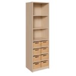 - BxHxT: 52x160x40 cm, unten 8 Kästen, oben Regal mit 2 Einlegeböden.