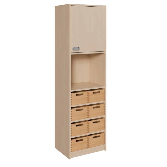 Entdecken Sie die ultimative Lösung für Stauraum auf engstem Raum: Unser hoch aufragender Korpus-Schrank ist ein Meisterwerk der Effizienz. Mit einer ultra-schlanken Breite von nur 52 cm, 8 geräumigen, mittelhohen Massivholzkästen und einem praktischen Tür-Aufsatz verwandelt er jede ungenutzte Nische in ein Kraftzentrum der Organisation. Dieses Möbelstück wurde speziell für die hohen Anforderungen in Werkstätten, Lehrerzimmern, Büros oder Therapieräumen entwickelt. Es bietet eine geniale Kombination aus schnell zugänglichem Stauraum in den Schubkästen und einem diskreten, geschützten Bereich hinter der Tür – perfekt, um Raumhöhe optimal zu nutzen und gleichzeitig eine klare Struktur zu schaffen.