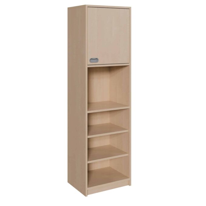 Entdecken Sie ein Möbelstück, das auf kleinstem Raum maximale Organisation ermöglicht. Dieser schmale Hochschrank ist die perfekte Lösung für Nischen und Ecken, die bisher ungenutzt blieben. Er kombiniert auf intelligente Weise ein offenes Regal im unteren Bereich für den schnellen Zugriff mit einem geschlossenen, diskreten Türfach oben. Ideal für Kitas, Schulen, Büros oder Flure, bietet er eine durchdachte Balance zwischen Präsentieren und Verbergen. Ob für Bücher und Spielmaterialien, die für Kinder leicht erreichbar sein sollen, oder für persönliche Gegenstände, die sicher und blickdicht verstaut werden – dieses schlanke Stauraumwunder fügt sich nahtlos in jede Umgebung ein und schafft Struktur und Ordnung.