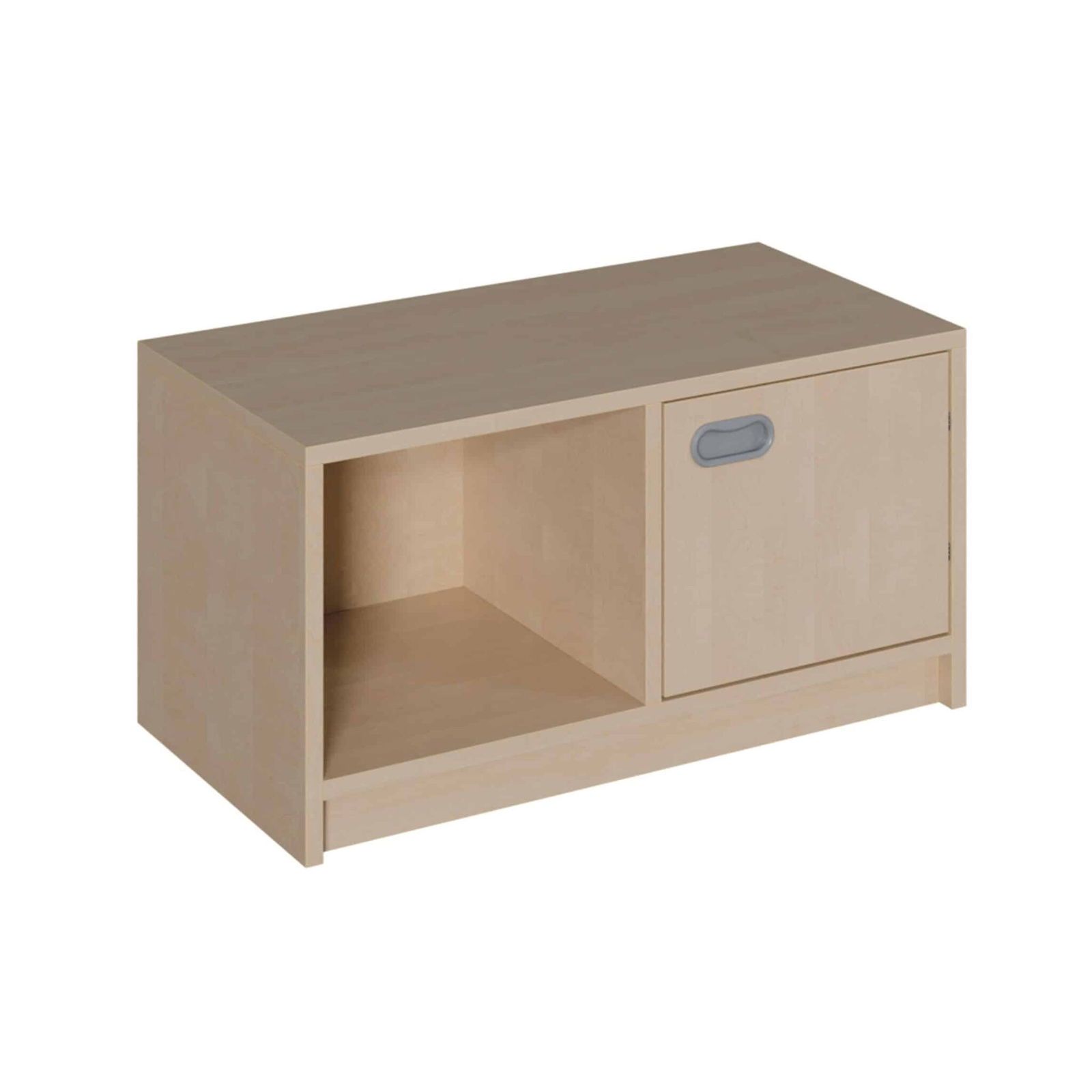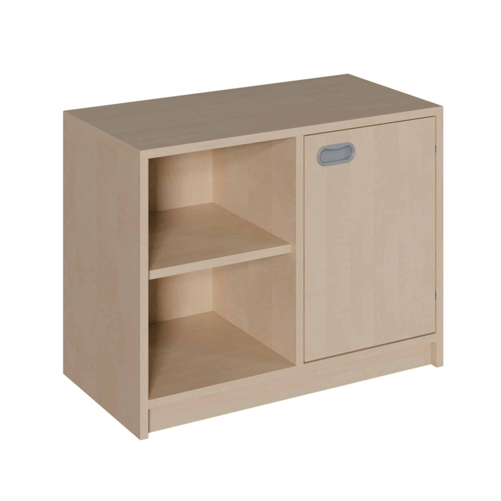 Entdecken Sie ein Möbelstück, das sich perfekt in den dynamischen Alltag von Kindern einfügt und dabei hilft, spielend leicht Ordnung zu halten. Dieses kompakte Korpus-Sideboard kombiniert auf clevere Weise ein offenes Regalfach für schnellen Zugriff mit einem geschlossenen Türfach für alles, was diskret verstaut werden soll. Dank seiner niedrigen Höhe und der robusten Bauweise ist es nicht nur ein praktisches Stauraummöbel, sondern auch eine ideale Spiel- und Arbeitsfläche für Kinder. Es schafft Struktur, fördert die Selbstständigkeit und passt sich mit seinen verschiedenen Größen und Ausführungen mühelos an jeden Raum an – von der Kita bis zum Kinderzimmer.