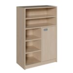 Entdecken Sie einen Schrank, der die Vorteile von offenem und geschlossenem Stauraum meisterhaft vereint. Dieses vielseitige Möbelstück kombiniert strategisch platzierte Regalfächer mit einem diskreten Türabteil und schafft so die ideale Lösung für jede organisatorische Herausforderung in Kitas, Schulen oder Büros. Während im unteren Bereich hinter einer Tür all das verschwindet, was nicht für jeden sichtbar sein soll, bieten die offenen Regalfächer daneben und darüber schnellen Zugriff und eine ansprechende Präsentationsfläche. Dieser Schrank ist ein wahres Multitalent, das Struktur in den Raum bringt und sich flexibel an wechselnde Bedürfnisse anpasst – ein unverzichtbarer Helfer für einen aufgeräumten und funktionierenden Alltag.