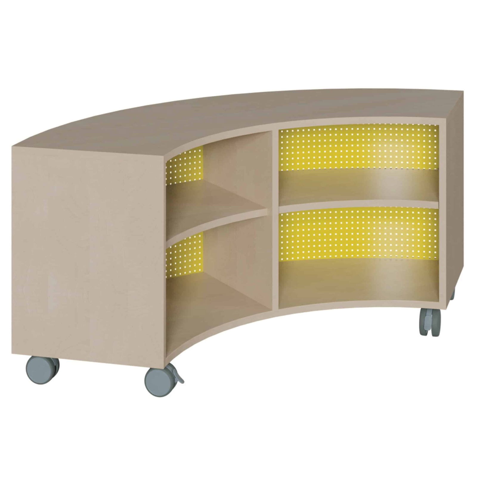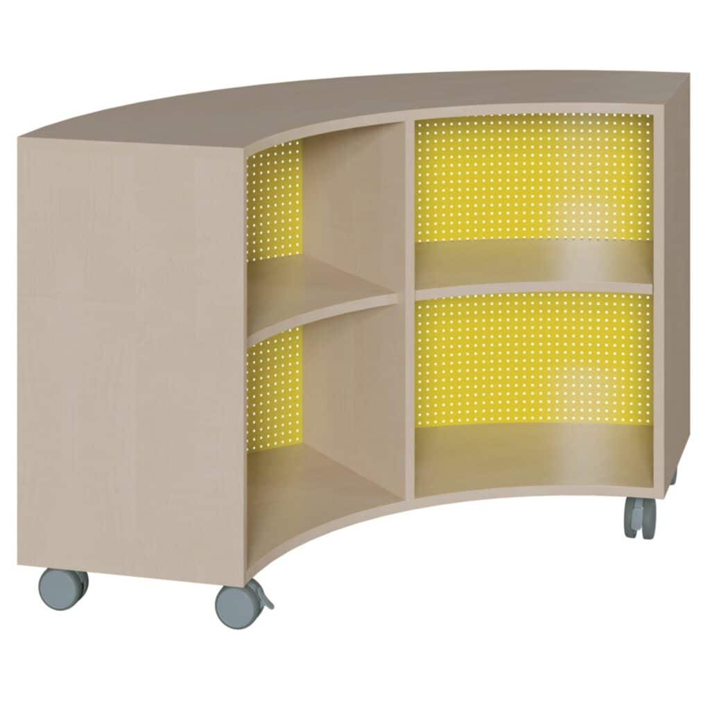 - Kreative Inseln und Raumlandschaften: Dieses Möbelstück entfaltet sein volles Potenzial in der Kombination. Stellen Sie vier Schränke zu einem vollständigen Kreis mit einem beeindruckenden Durchmesser von zwei Metern zusammen. So entstehen einzigartige Themeninseln, Materialdepots oder Besprechungsrunden, die zum Mittelpunkt jeder Aktivität werden.