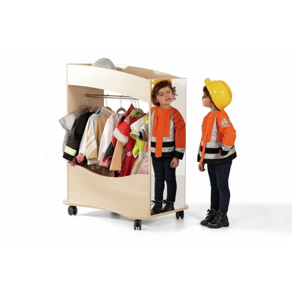 Kinder lieben es, in andere Rollen zu schlüpfen. Ob mutige Heldin, wilder Pirat oder magisches Fabelwesen – Verkleidungen regen die Fantasie an und fördern die kreative Entwicklung. Doch im Alltag sammeln sich die Kostüme schnell auf dem Boden oder in Kisten an, wo sie knittern und schwer zu finden sind. Unsere Kostümgarderobe bietet Ihnen eine praktische und übersichtliche Lösung für genau dieses Problem. Mit großzügigem Platz für rund 50 Kostüme schaffen Sie im Handumdrehen Ordnung im Kinderzimmer oder in der Betreuungseinrichtung. Ein aufgeräumtes Umfeld hilft Kindern, sich besser zu konzentrieren und entspannter zu spielen. Die Garderobe motiviert sie zudem dazu, ihre liebsten Verkleidungen nach dem Spielen selbstständig wieder aufzuräumen.