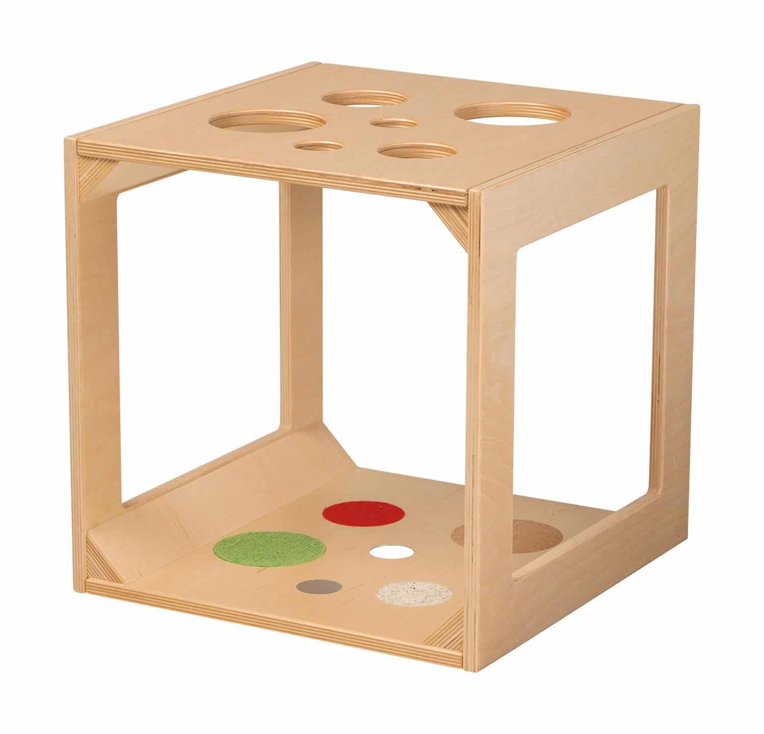 - Vielseitige haptische Materialien: Die Würfeloberflächen bieten spannende Sinneseindrücke durch Elemente wie Teppich, Spiegel oder Stein, die Kinder beim Durchkrabbeln und Tasten entdecken können.