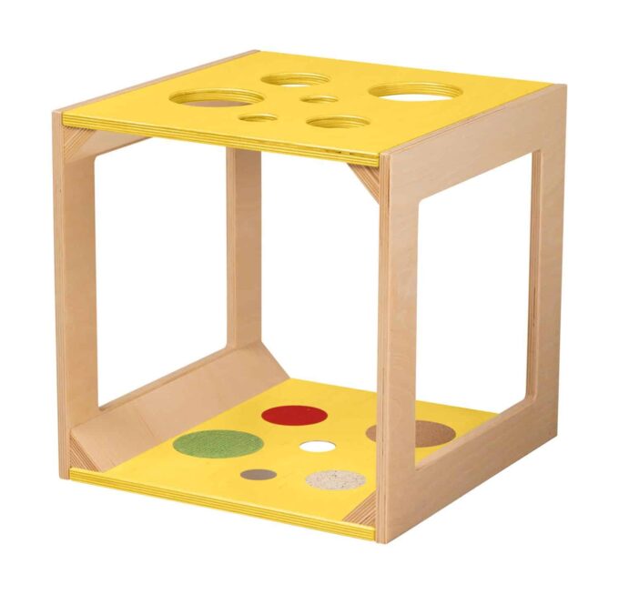 - Spielerische Sinneserfahrungen: Die Fühl- und Tastelemente machen das Erforschen des Würfels zu einem Erlebnis, das die kindliche Neugier optimal fördert.