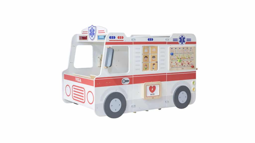 Der Krankenwagen ist mit umfangreichen medizinischen Hilfsmitteln ausgestattet, damit die Kinder lernen, wie sie in Notfällen reagieren. Dank der vielen Details und der kindgerechten Größe können die jungen Retter problemlos in ihrem Spiel agieren. Sogar ein Labyrinth auf dem Außenseiten des Spielhauses bietet eine zusätzliche Möglichkeit, ihre Fähigkeiten im spielerischen Rahmen zu testen und ihr Wissen über den menschlichen Körper zu erweitern.