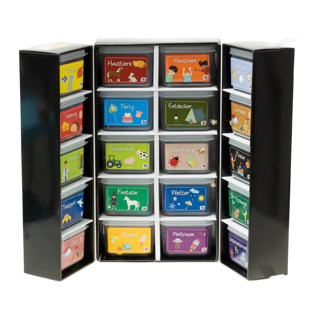 Willkommen zu den Kreativ-Sprach-Boxen! Diese einzigartigen Kisten sind der Schlüssel zu einer Welt voller Geschichten und Ideen für Kinder im Alter von 3 bis 11 Jahren. Mit über 200 Figuren und 20 Themenboxen bietet das Set alles, was man für spielerische Sprachförderung braucht. Lassen Sie die Fantasie Ihrer Kinder erblühen!