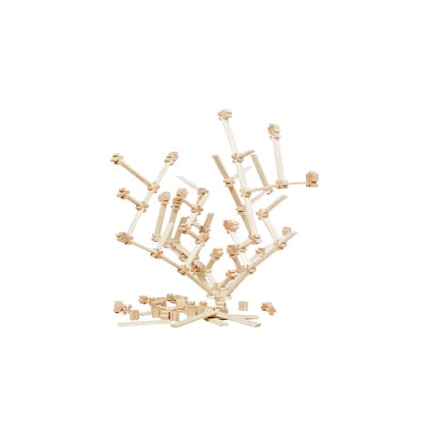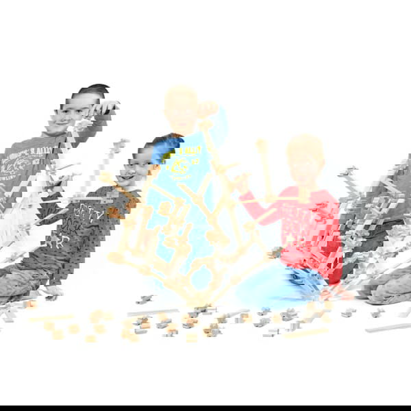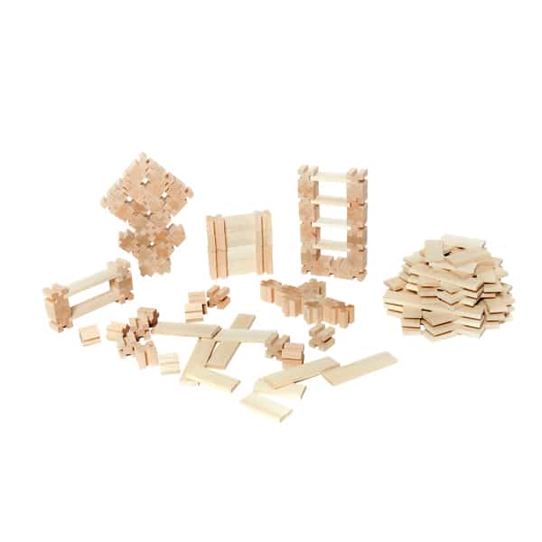Das Set besteht aus einer sorgfältig zusammengestellten Auswahl von Bauteilen: 40 x-förmige Würfel und 40 t-förmige Würfel sorgen für vielfältige Verbindungsmöglichkeiten, während die Bretter in drei verschiedenen Längen (7,5 cm, 12 cm und 16,5 cm) die Konstruktionen in der Breite und Höhe erweitern. Eine große Spielfläche bildet die Basis für großangelegte Bauprojekte.