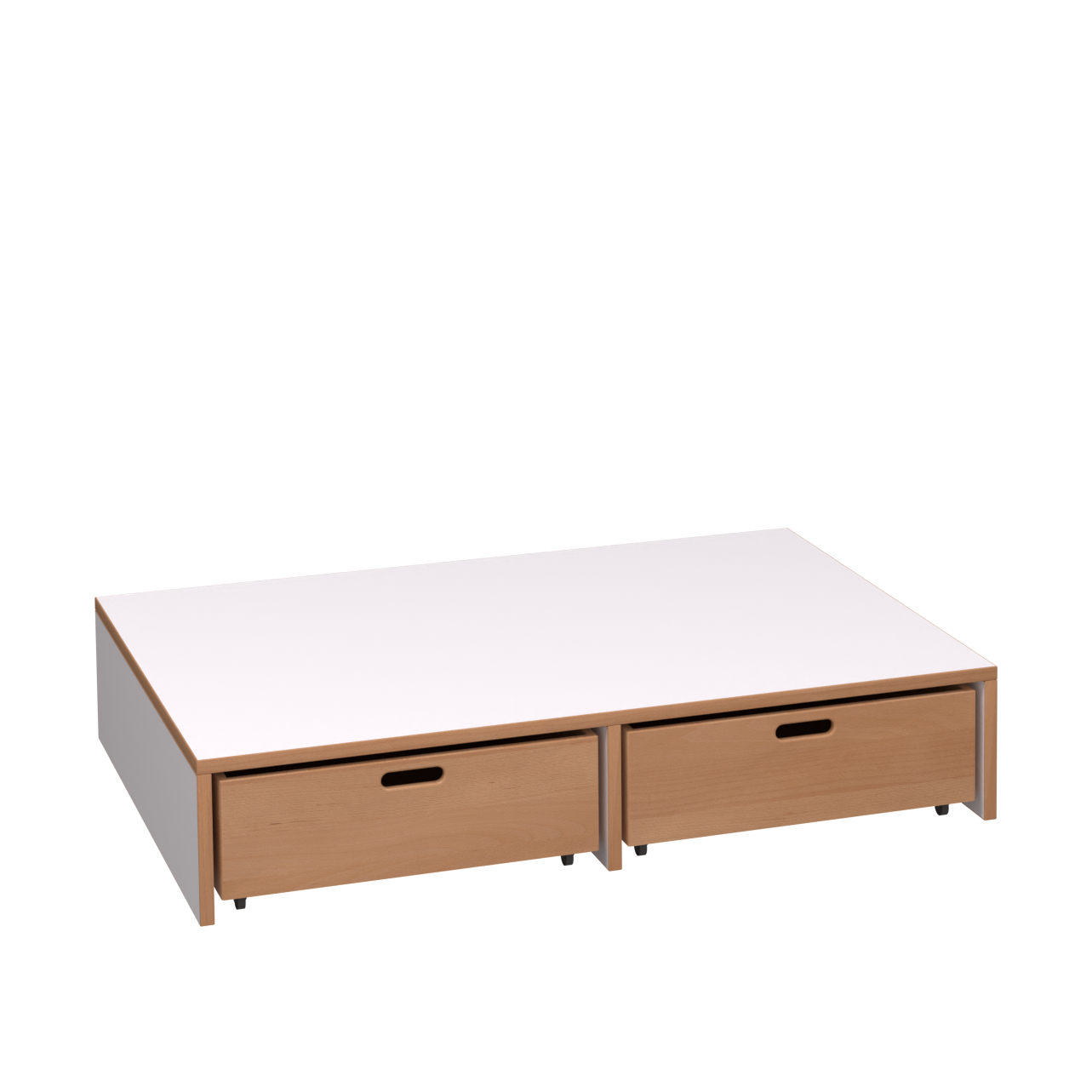 - 1x Podest (B 105,6 x H 20,5 x T 72 cm) mit 2 Rollkisten (B 48 x H 17,5 x T 69 cm)