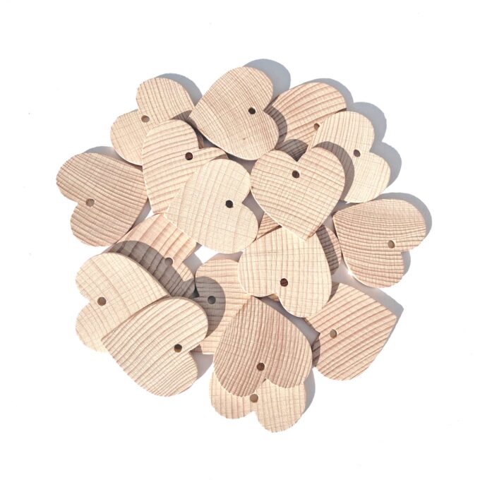 - Inhalt: 18 Anhänger aus Buchenholz in Herzform