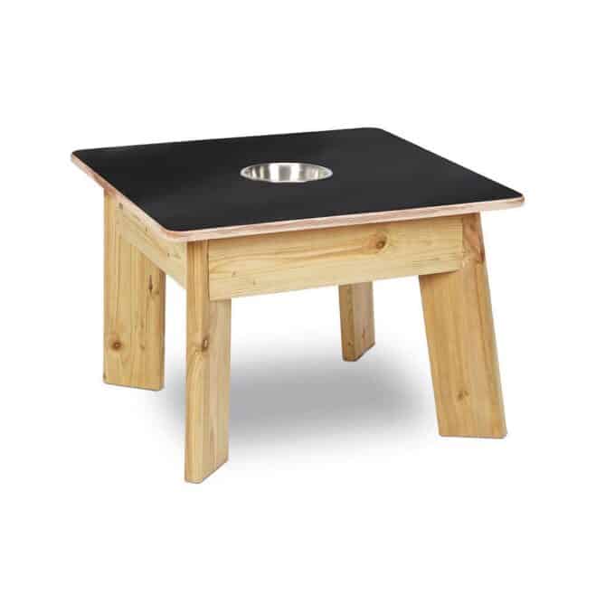 Das quadratische, freistehende Design macht den Tisch zum idealen Mittelpunkt für Gruppenaktivitäten. Ob als Zeichentisch, als Zentrum für erste Schreibübungen oder als Spielbrett für selbst erfundene Kreidespiele – die Möglichkeiten sind so vielfältig wie die Ideen der Kinder. Ein besonderes Highlight ist die integrierte, herausnehmbare Schale in der Mitte des Tisches. Sie sorgt dafür, dass Kreide, Schwämme oder Naturmaterialien immer griffbereit sind und nicht verloren gehen. Gefertigt aus hochwertigem, wetterfestem Holz, ist dieser Tisch speziell für den harten Alltag in Kitas, Schulen und Gärten konzipiert. Er verbindet pädagogischen Nutzen mit Langlebigkeit und Sicherheit und schafft einen Raum, in dem Lernen und Spielen nahtlos ineinandergreifen.