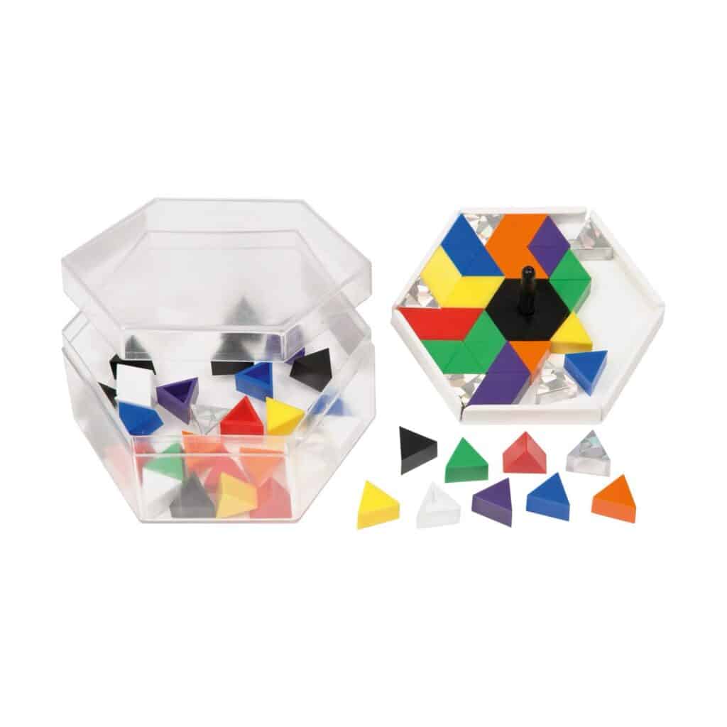 - Präzises Platzieren der Prismos: Das Anordnen und Kombinieren fördert die Feinmotorik und die Geduld.