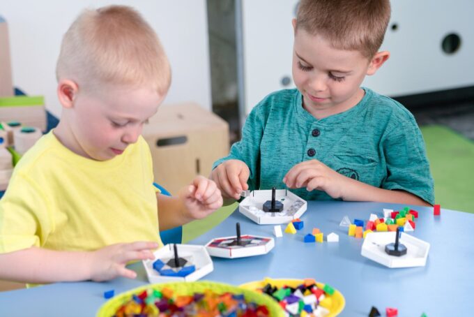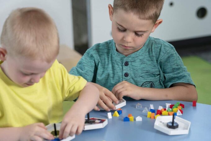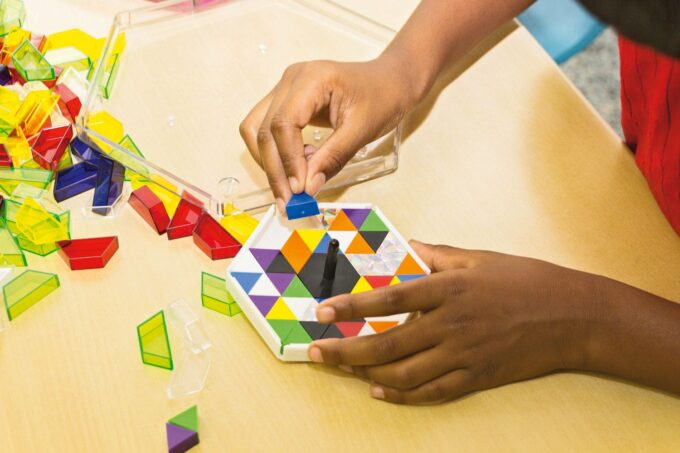 - Präzises Platzieren der Prismos: Das Anordnen und Kombinieren fördert die Feinmotorik und die Geduld.