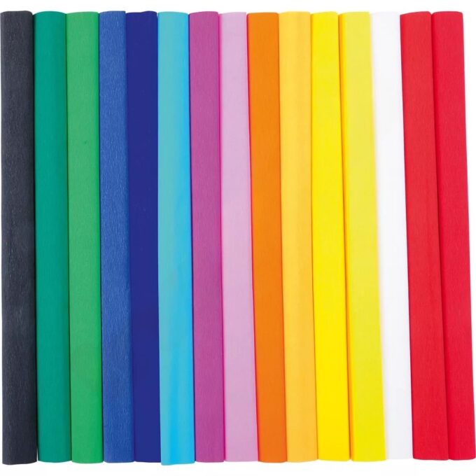 Gestalten Sie Ihre Bastelstunden lebhaft und farbenfroh mit unserem umfangreichen Krepppapier-Set! Dieses Set enthält 15 Rollen in 13 beeindruckenden Farben, wobei jede Rolle großzügige Maße von 50 x 200 cm bietet. Die Vielfalt der Farben ermöglicht es Ihnen, für jede Gelegenheit die perfekte Nuance zu finden – sei es für festliche Anlässe, kreative Deko-Ideen oder spaßige Bastelstunden mit Kindern.