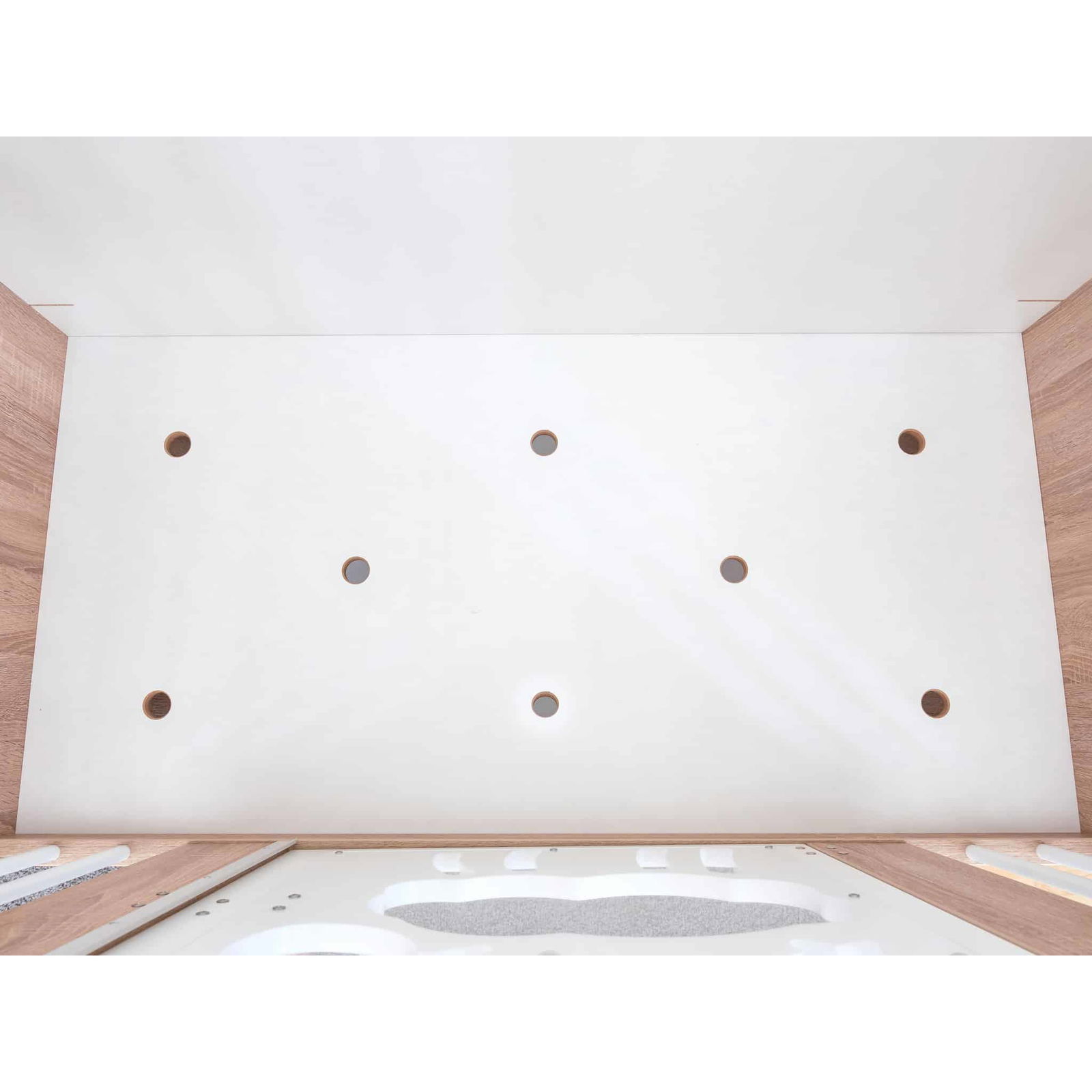 - Belüftete Bettenböden: Durch die Belüftungslöcher in den massiven MDF-Platten ist eine optimale Luftzirkulation unter der Matratze garantiert.