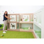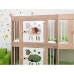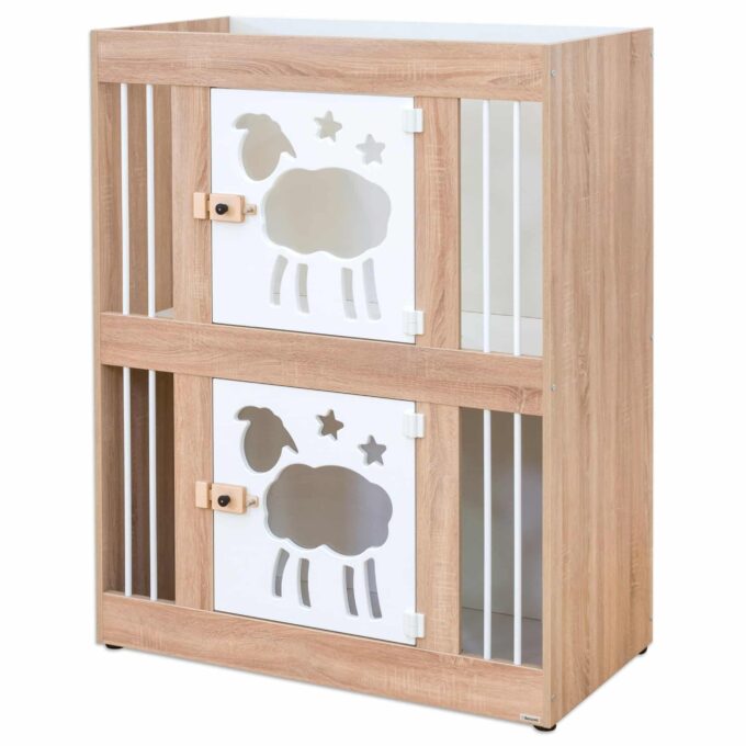 Das EduCasa Krippen-Etagenbett, 2-türig wurde speziell entwickelt, um Kleinkindern eine sichere und gemütliche Schlafumgebung zu bieten. Dieses durchdachte Möbelstück verbindet höchste Sicherheitsstandards mit praktischem Design und einer ansprechenden Ästhetik. Die beiden liebevoll gestalteten Türen mit transparentem Acrylglaseinsatz ermöglichen es, das schlafende Kind jederzeit im Blick zu behalten. Gleichzeitig bieten sie den Kleinen die Möglichkeit, nach dem Aufwachen die Umgebung zu erkunden, ohne sich eingeengt zu fühlen.