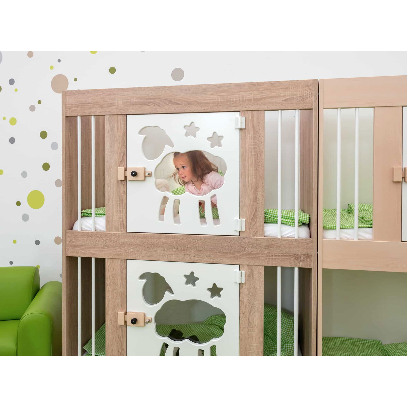 - Transparente Türen: Die Türen bestehen aus hochwertigem MDF mit Acrylglaseinsatz und sorgen dafür, dass das schlafende Kind jederzeit beobachtet werden kann.