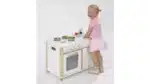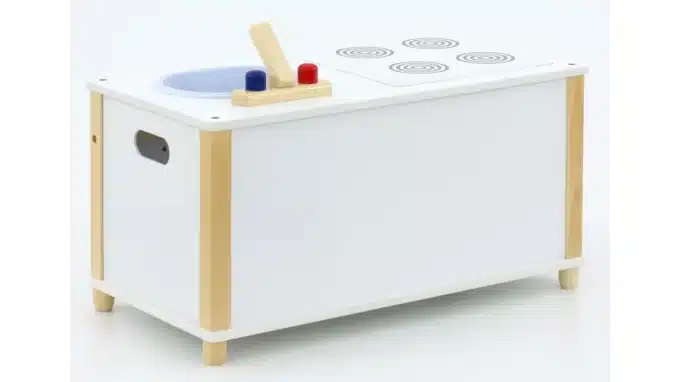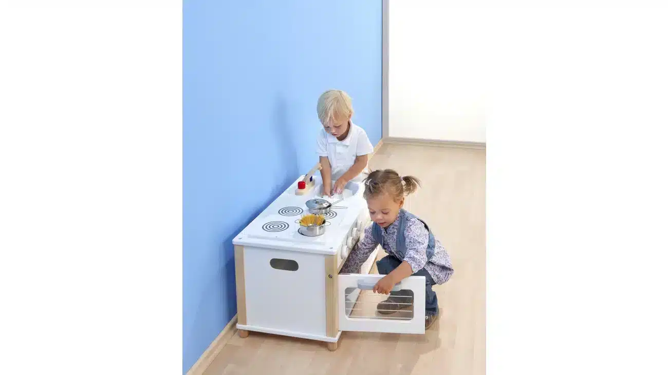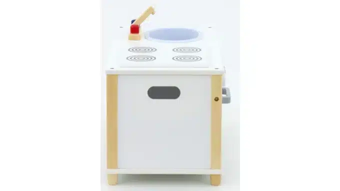• Lernen mit allen Sinnen: Im integrierten, aufklappbaren Backofen können leckere Kunstwerke „gebacken“ werden. Nach der Kochzeit folgt der Abwasch! Das herausnehmbare Waschbecken ist ideal, um die Spielgeschirr zu reinigen, und die drehbaren Armaturenknöpfe helfen den Kindern, den Unterschied zwischen heiß und kalt auf spielerische Weise zu verstehen.