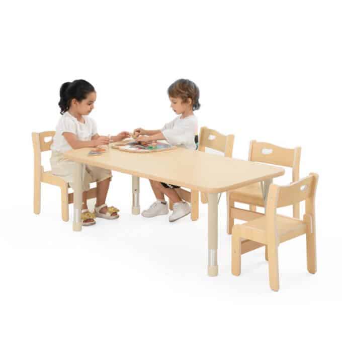 - Der rechteckige Tisch bietet ausreichend Platz für vier bis sechs Kinder, um gemeinsam zu spielen, zu malen oder zu essen.