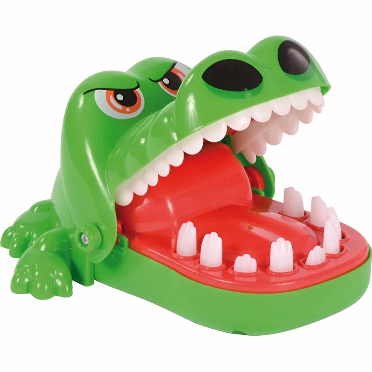 Das arme Krokodil hat Zahnschmerzen, doch welcher Zahn ist der Übeltäter? Mutige Zahnärzte sind gefragt! Das Krokodil Schnapp Spiel ist ein Klassiker, der Generationen mit seinem einfachen, aber genialen Prinzip begeistert. Es ist ein Spiel voller Spannung, Lachen und aufgeregtem Quietschen, bei dem Konzentration und blitzschnelle Reaktionen gefragt sind. Reihum drückt jeder Spieler einen Zahn des Krokodils herunter – doch Vorsicht! Erwischt man den falschen, empfindlichen Zahn, schnappt das Maul blitzschnell zu.