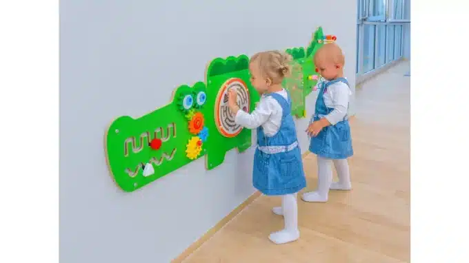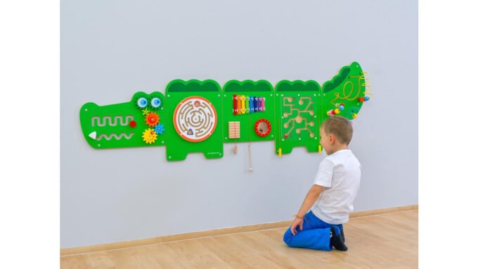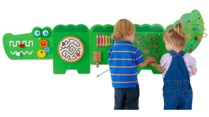 Krokodil-Wandspiel, 5-tlg. – Entdecken, Spielen und Lernen an der Wand!