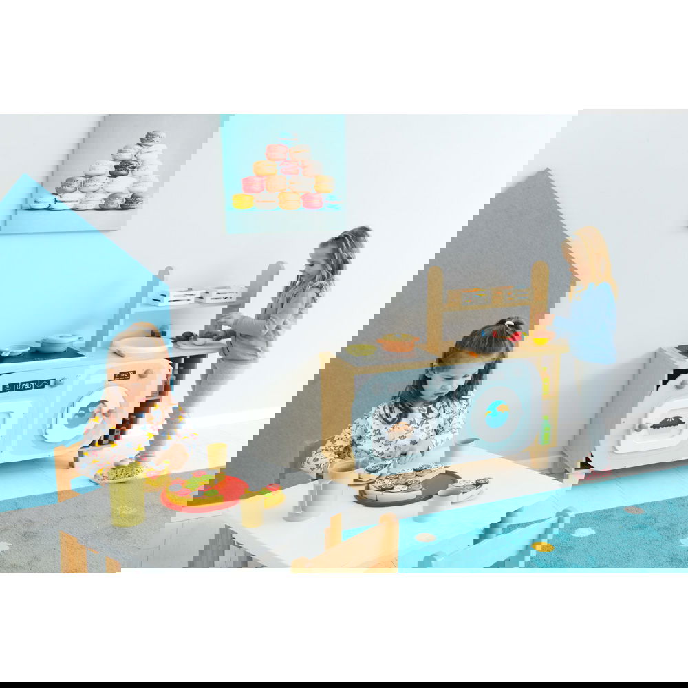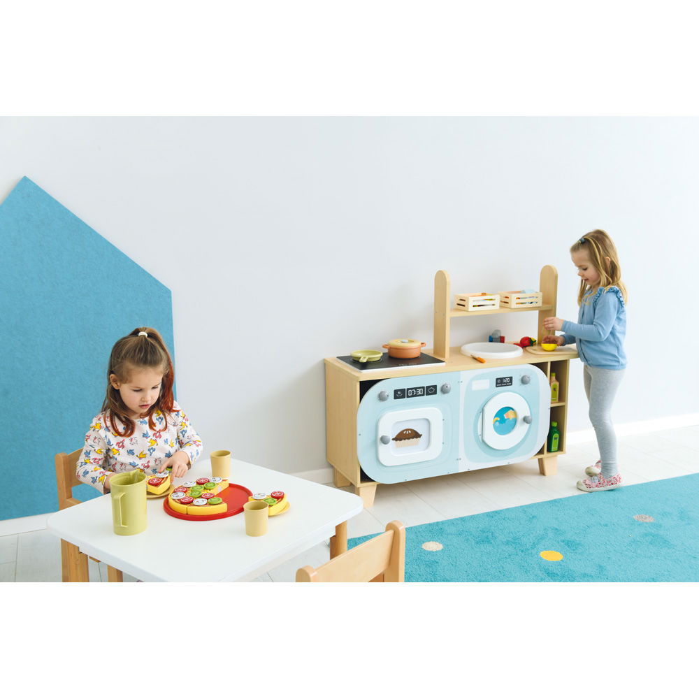 Die realitätsnahen Module regen zu vielfältigen Rollenspielen an. Beim gemeinsamen Kochen und Servieren trainieren die Kinder spielerisch ihre Kommunikation und soziale Interaktion.