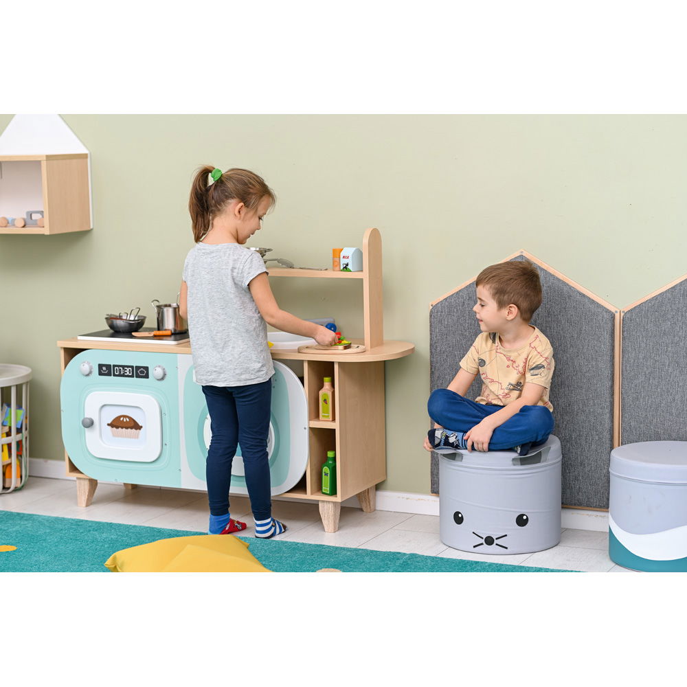 Kinder begreifen ihre Umgebung am besten, indem sie alltägliche Situationen aus der Welt der Erwachsenen nachspielen. Die kompakte Spielküche Tessa bietet kleinen Köchen und Entdeckern genau dafür den idealen Raum. Auf einer überschaubaren Fläche vereint dieses durchdachte Möbelstück zahlreiche Funktionen, die zu kreativen und gemeinsamen Rollenspielen einladen. Ob in der Krippe, im Kindergarten oder im heimischen Kinderzimmer – die Küche fügt sich harmonisch in jeden Raum ein und wird schnell zum zentralen Treffpunkt für fantasievolle Abenteuer.